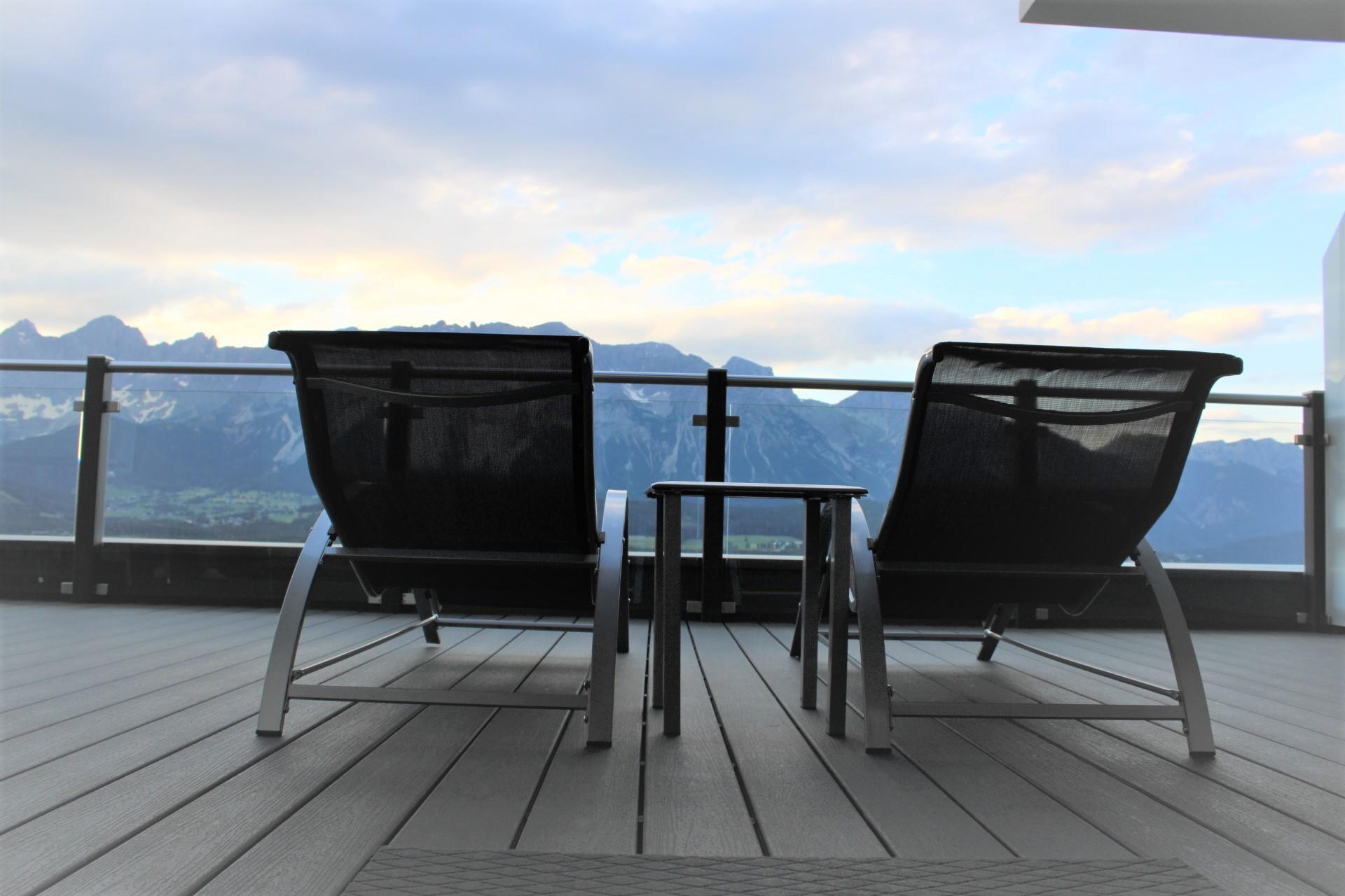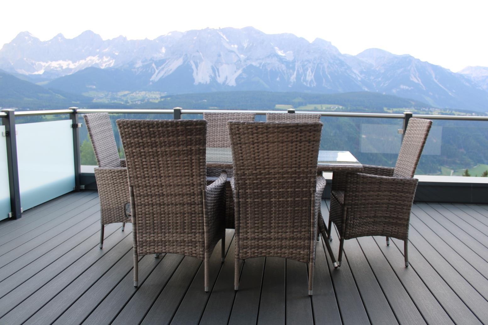 Neu errichtete Ferienwohnung für 5 Personen. Ca. 62 m2 groß mit 2 Schlafzimmer, Wohnküche mit Essecke und Couch, 2 Badezimmer mit Dusche und WC, Balkon mit Blick Richtung Dachstein.
