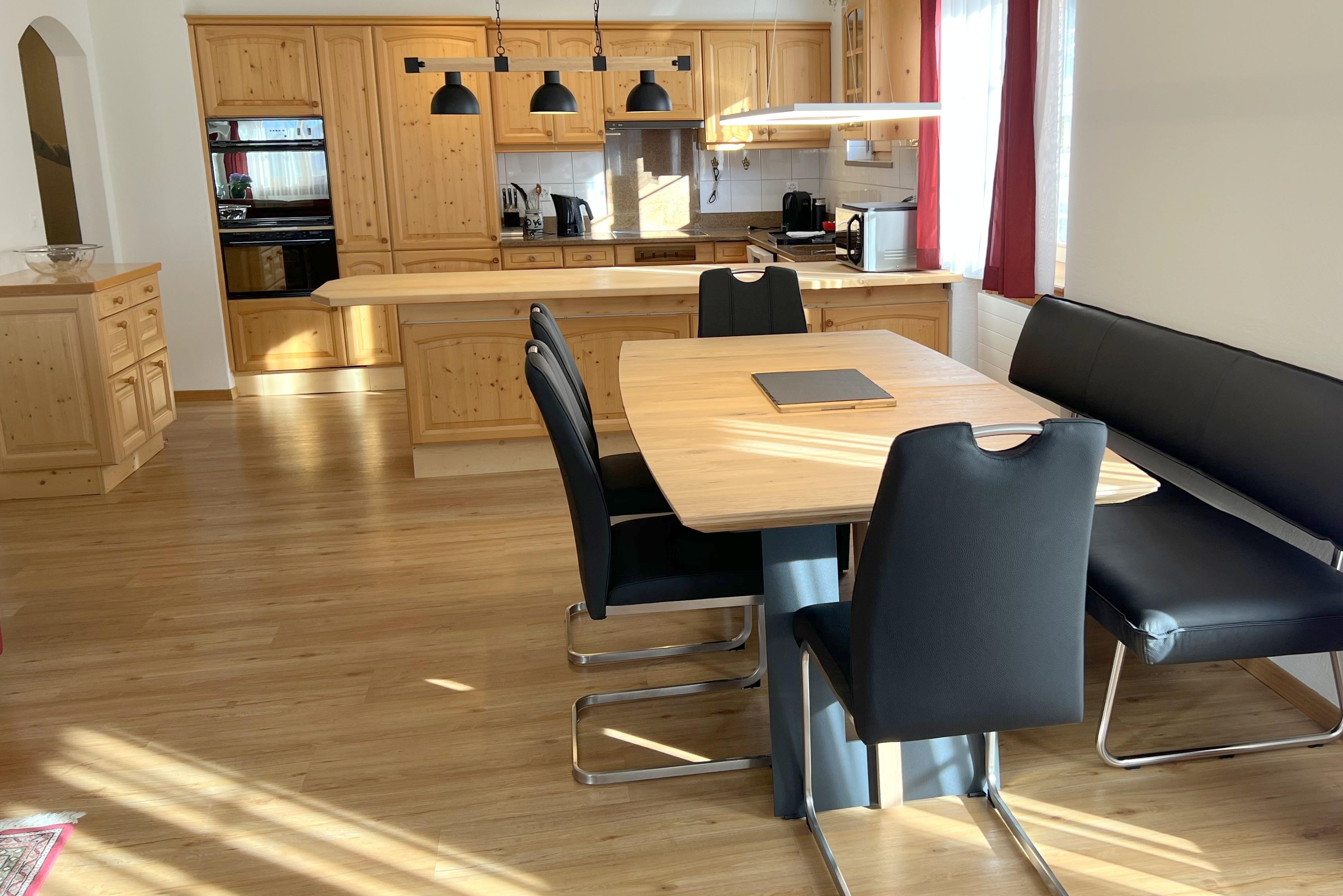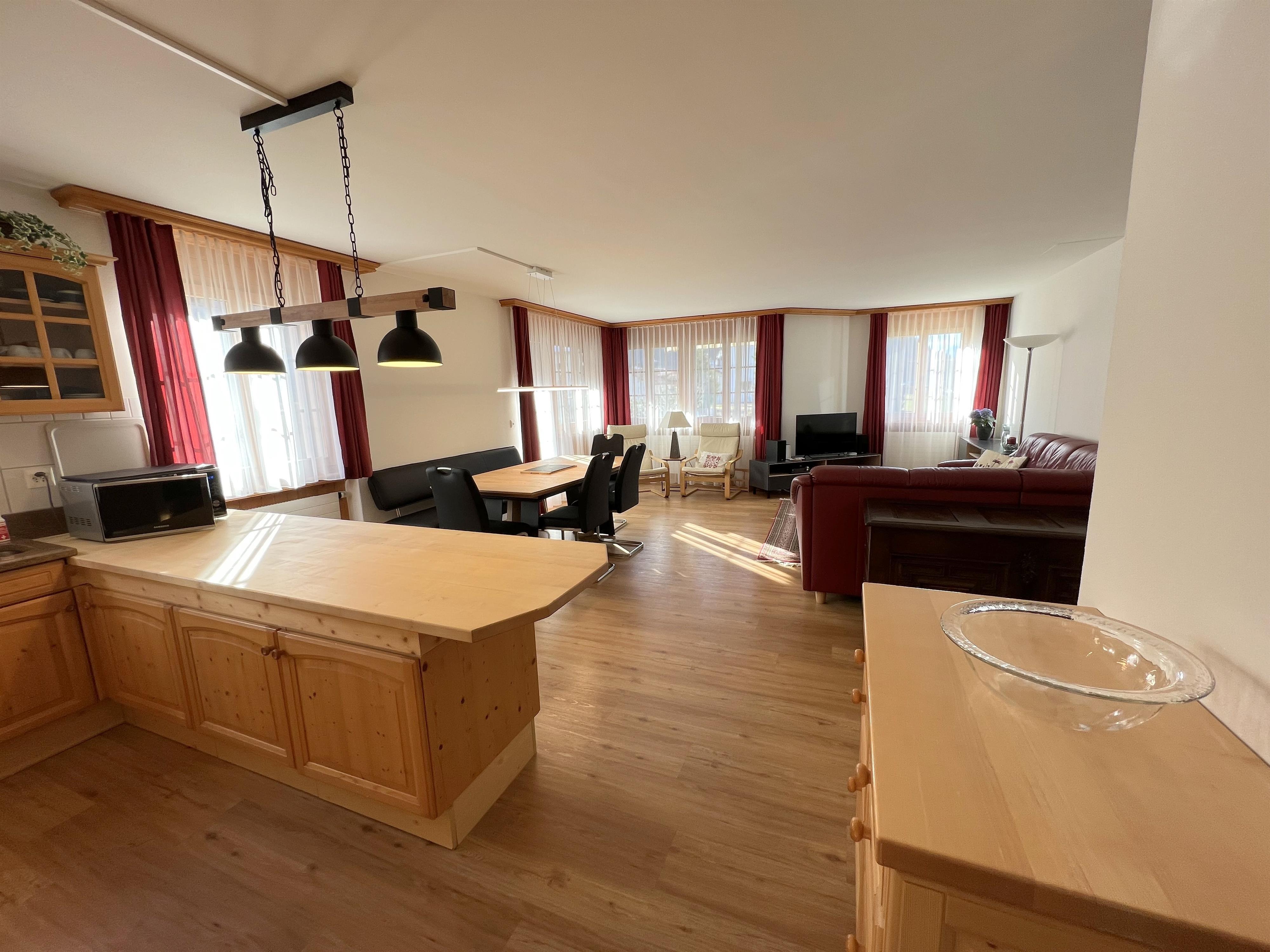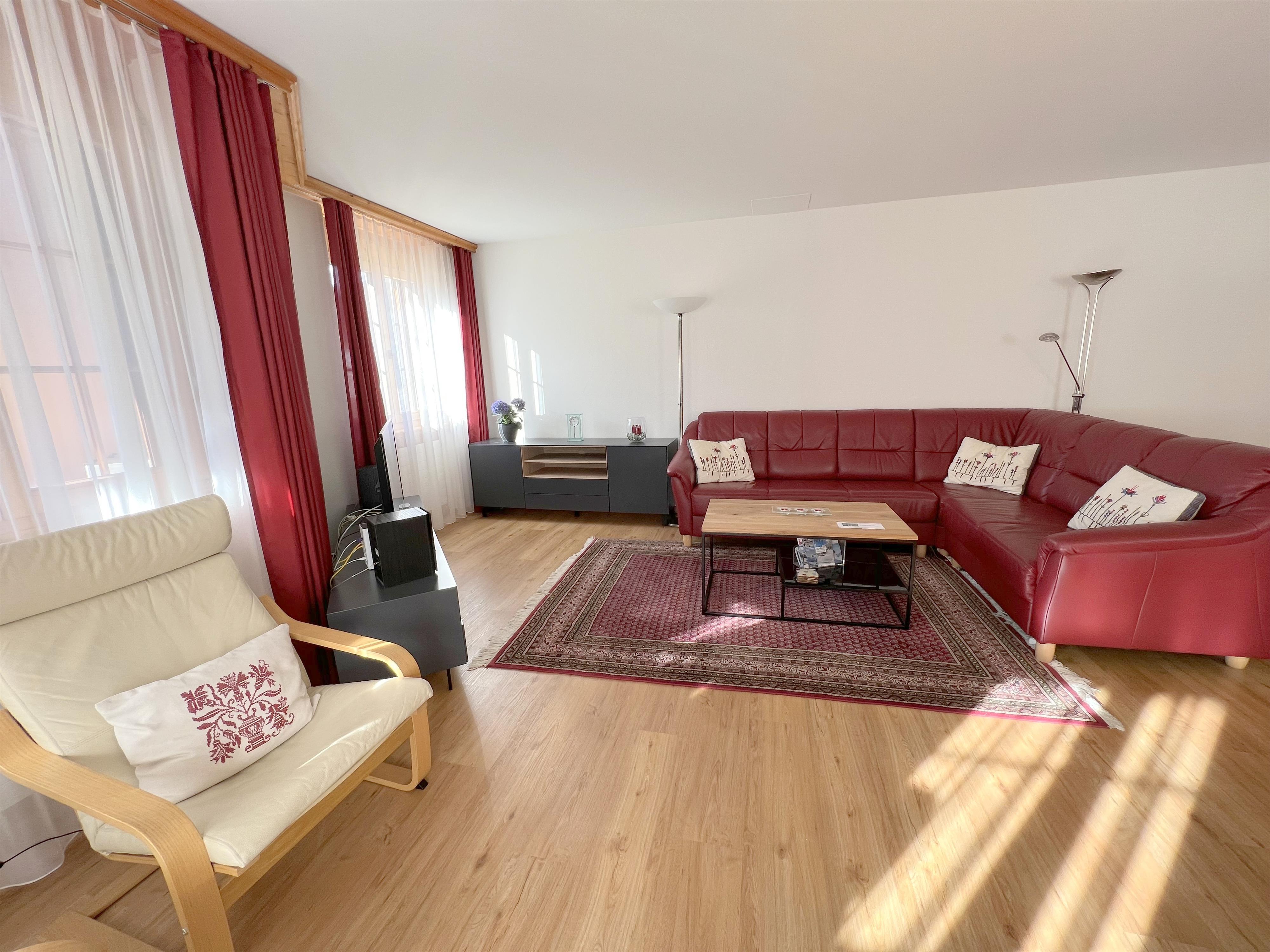 Ruhige und doch zentrale Lage unmittelbar beim Skilift Bünda. Die Langlaufloipe führt direkt neben dem Haus vorbei. Einkaufsmöglichkeiten, Post, öffentliche Verkehrsmittel inkl. Ortsbus und Parsennbahn in 5 Min erreichbar. 4 1/2 Zimmerwohnung (ca 120m2) im Parterre in einem Mehrfamilienhaus mit Lift. Parkplatz in Einstellhalle, Terrasse, Mitbenützung der Waschmaschine/Tumbler. Küche offen zum Wohnzimmer, elektrischer Kochherd, Backofen, Combi-Steamer, Geschirrspühler, Kühl- und Gefrierschrank. Wohnzimmer (ca 33m2) mit Radio, Fernseher, WLAN, Polstergruppe und Esstisch. 1 Schlafzimmer mit Doppelbett, Schrank, direkter Zugang zu WC mit Bad/Dusche. 2 Schlafzimmer mit 2 Einzelbetten, Kasten, Kommode. 1 WC mit Dusche. Vollständig rollstuhlgängig. Nichtraucherwohnung! Keine Haustiere erlaubt!