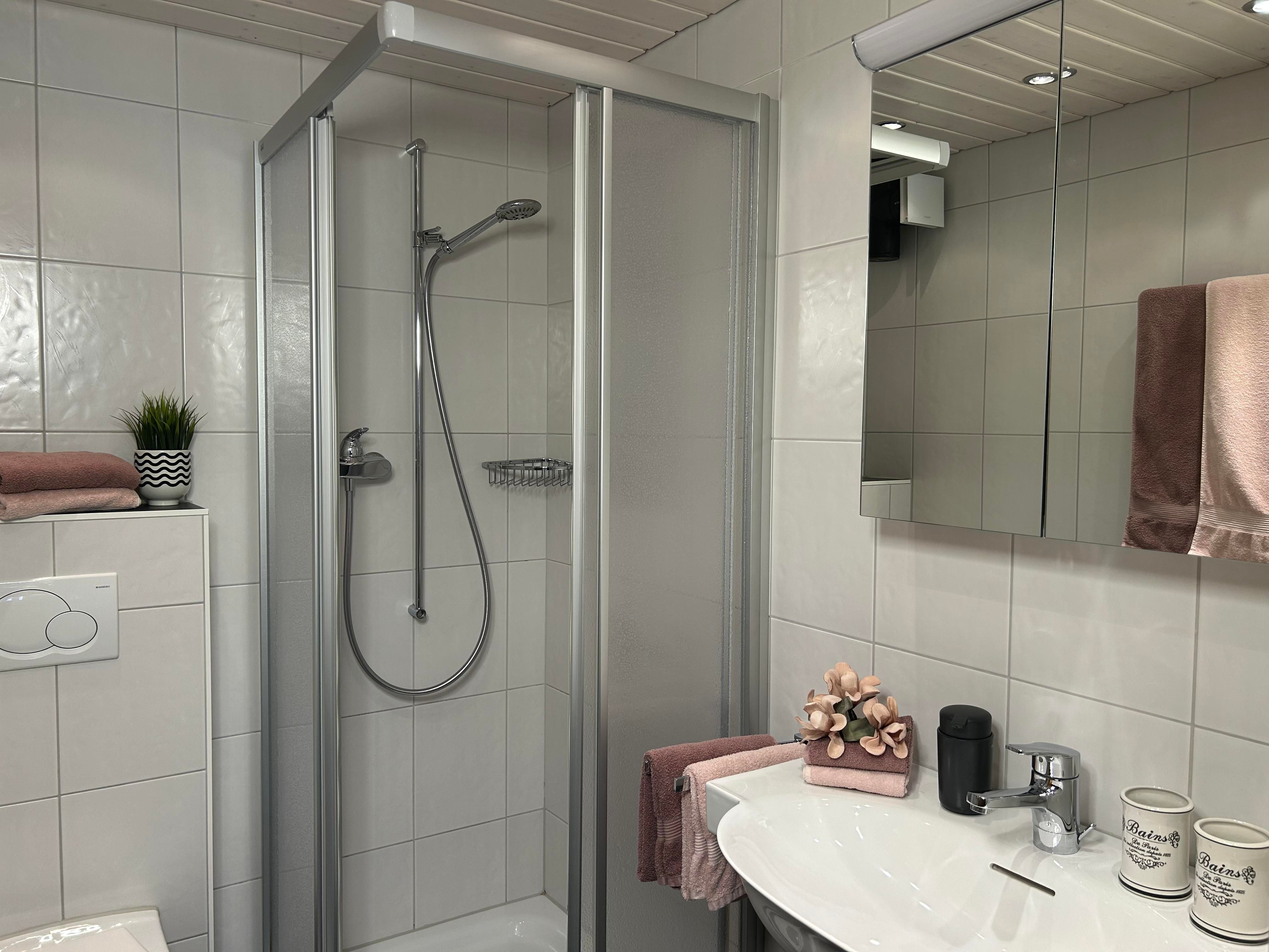2-Zimmerwohnung mit Süd-und Westbalkon. Stilvoll eingerichtet, Wohn-/Esszimmer mit 2 Schlafgelegenheiten, 1 Doppelschlafzimmer mit Waschbecken, Küche mit Geschirrspüler,Glaskeramikherd, Kaffee-Filtermaschine oder Kaffeemaschine DELIZIO Kapselsystem,Wasserkocher, Kühlschrank mit Gefrierfach, Nasszelle, Föhn, Gratis Internetzugang, Flachbildfernseher, Radio,CD-Player, Parkplatz neben dem Haus und grosse Liegewiese.