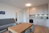 Genießen Sie das Kochen in der offenen, modernen Küche, die mit hochwertigen Geräten und eleganten Oberflächen ausgestattet ist. Das Bad verfügt über ein zeitgenössisches Design mit einer Dusche. Treten Sie auf den Balkon, um frische Luft zu schnappen oder sich nach einem langen Tag zu entspannen.