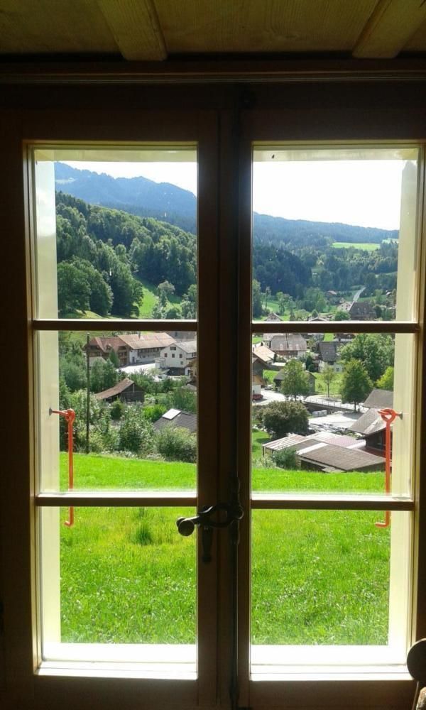 Willkommen in unserer idyllischen Zweizimmer-Ferienwohnung, die sich in einem freistehenden, regionaltypischen Holzhaus aus dem 19. Jahrhundert befindet. Gelegen am Südhang unterhalb eines Waldes, bietet diese Unterkunft eine ruhige Atmosphäre mit einem atemberaubenden Blick ins Tal und auf die Berge. Perfekt für Gäste, die den Kontrast zum Stadtleben suchen und die Schweiz erschwinglich erleben wollen.