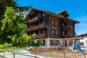 Sehr zentral gelegenes Haus, nur wenige Gehminuten von der Bergbahn Hohsaas, Zufahrt. Grosser Rasenplatz und Balkon.