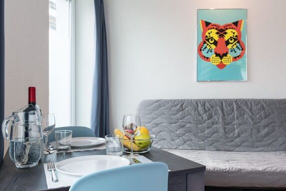 Diese zentrumsnahe Wohnung namens Tiger III bietet Ihnen alles was Sie zum wohnen und leben benötigt. Die Wohnung hat ein geräumiges Wohn/-Schlafzimmer und bietet Platz für insgesamt zwei Personen. In der Wohnung gibt es zudem eine komplett ausgestattete Küchenecke mit Herdplatten, Kühlschrank, Kaffeemaschine und vielen Extras mehr. Selbstverständlich hat die Wohnung auch ein privates Badezimmer mit WC und Dusche. Ein grosses Plus des Studios ist zudem der eigene Balkon. Hier können Sie entspannen und zur Ruhe kommen.
