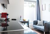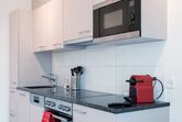 Das Business Apartment an der Buckhauserstrasse 16 eignet sich optimal für Personen, die geschäftlich für eine längere oder kürzere Zeit in Zürich sind. Das Apartment hat insgesamt zwei Zimmer. Im Schlafzimmer finden Sie ein grosses Doppelbett. Im Wohnzimmer gibt es ein gemütliches Sofa und eine Sitzecke mit Tisch und Stühlen. In der komplett ausgestatteten Küche finden Sie u.a. Herdplatten, eine Mikrowelle, ein Kühlschrank und viele Extras mehr. Das Apartment hat ein Badezimmer mit Dusche und WC und eine private Terrasse.