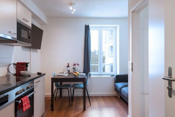 Die Wohnung Jaguar II ist eine elegante und moderne Lösung für Ihren Geschäftsaufenthalt in Zürich. Die möblierte Wohnung verfügt über zwei geräumige Zimmer, eine Küche sowie ein privates Badezimmer. Die Wohnung beherbergt insgesamt zwei Gäste - im Schlafzimmer finden Sie ein grosses Doppelbett. Die Küche ist mit allem ausgestattet, was Sie zum kochen benötigen und im Badezimmer finden Sie WC, Dusche, Haartrockner, Hand- und Badetücher sowie ein Starterset an Hygieneartikeln. Ausserdem gibt es einen Balkon.