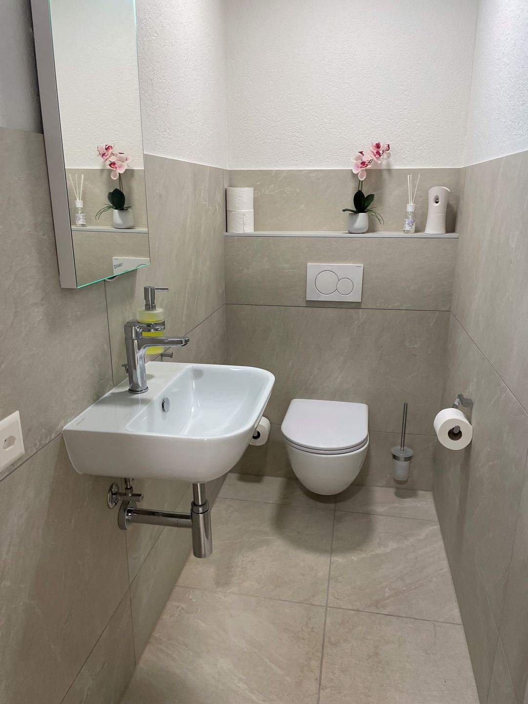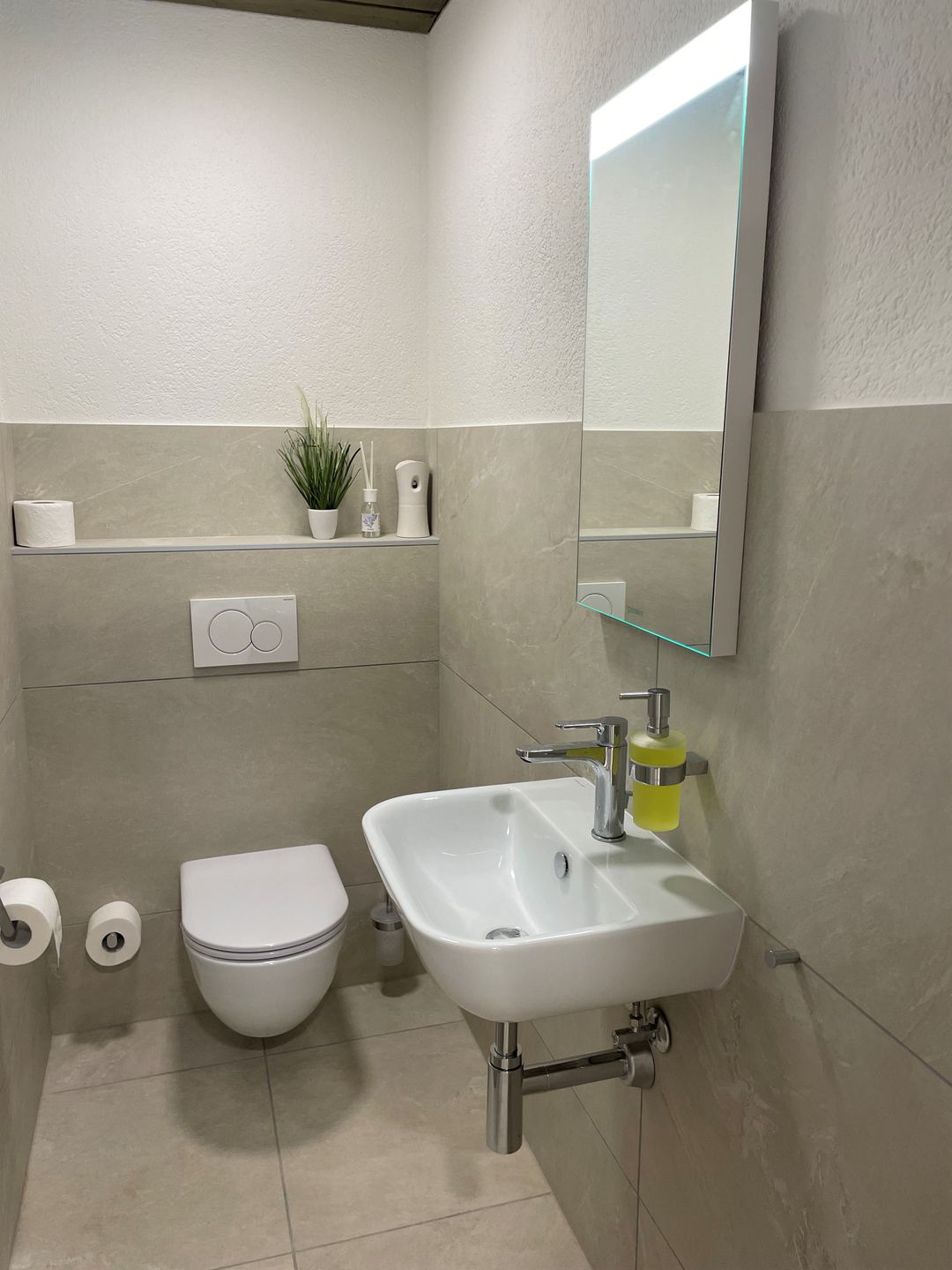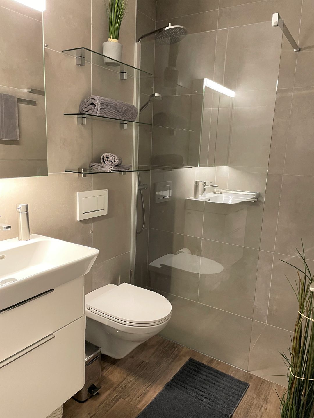 • Badezimmer mit begehbarer Dusche / WC, Haartrockner