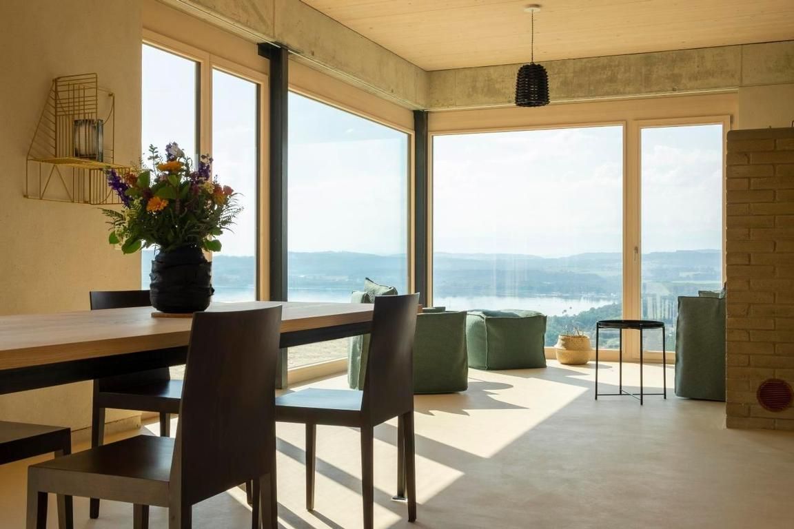 Mitten in einer Kulturlandschaft der besonderen Art steht das Gästehaus la Fourmi, in attraktiver und ruhiger Wohnlage am Südhang des Vully. Panoramaaussicht auf den Murtensee, die Weinreben und die Alpen mit Zugang zu einem eigenen Gartenanteil. Der Zugang zum Haus führt über eine Treppe in einen Innenhof mit einem kleinen Brunnen. Das Gästehaus wurde mit grossen Respekt vor der Natur und mit schonendem Umgang mit den Ressourcen realisiert. Lehmmauern und Holzdecken sorgen für ein gutes Klima.