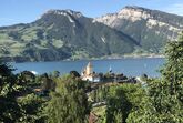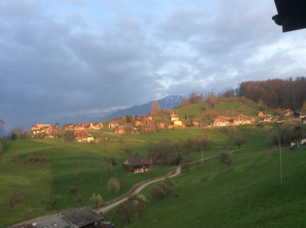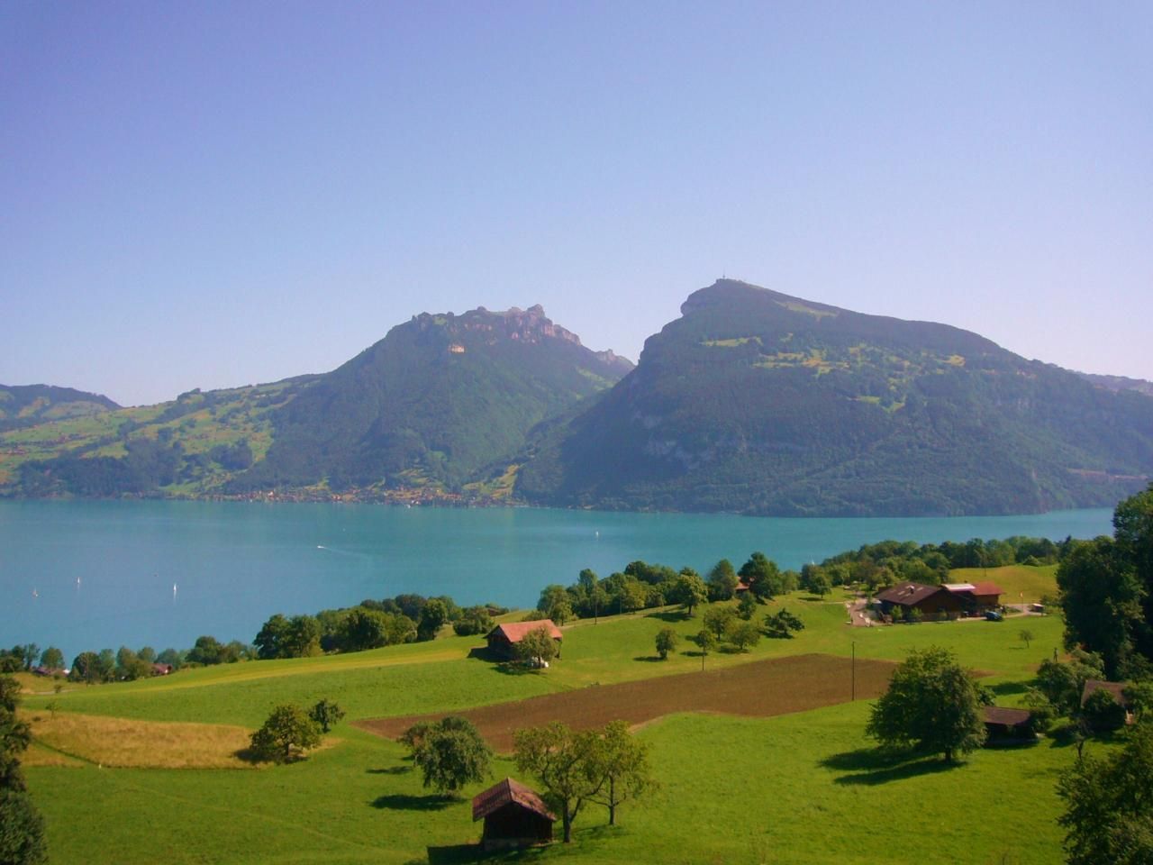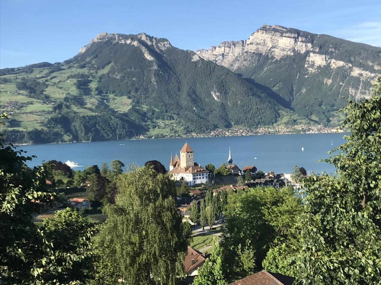 Der grosse Balkon zeigt auf den See und die Berge dahinter und erhält Morgensonne; der kleinere Balkon Abendsonne.