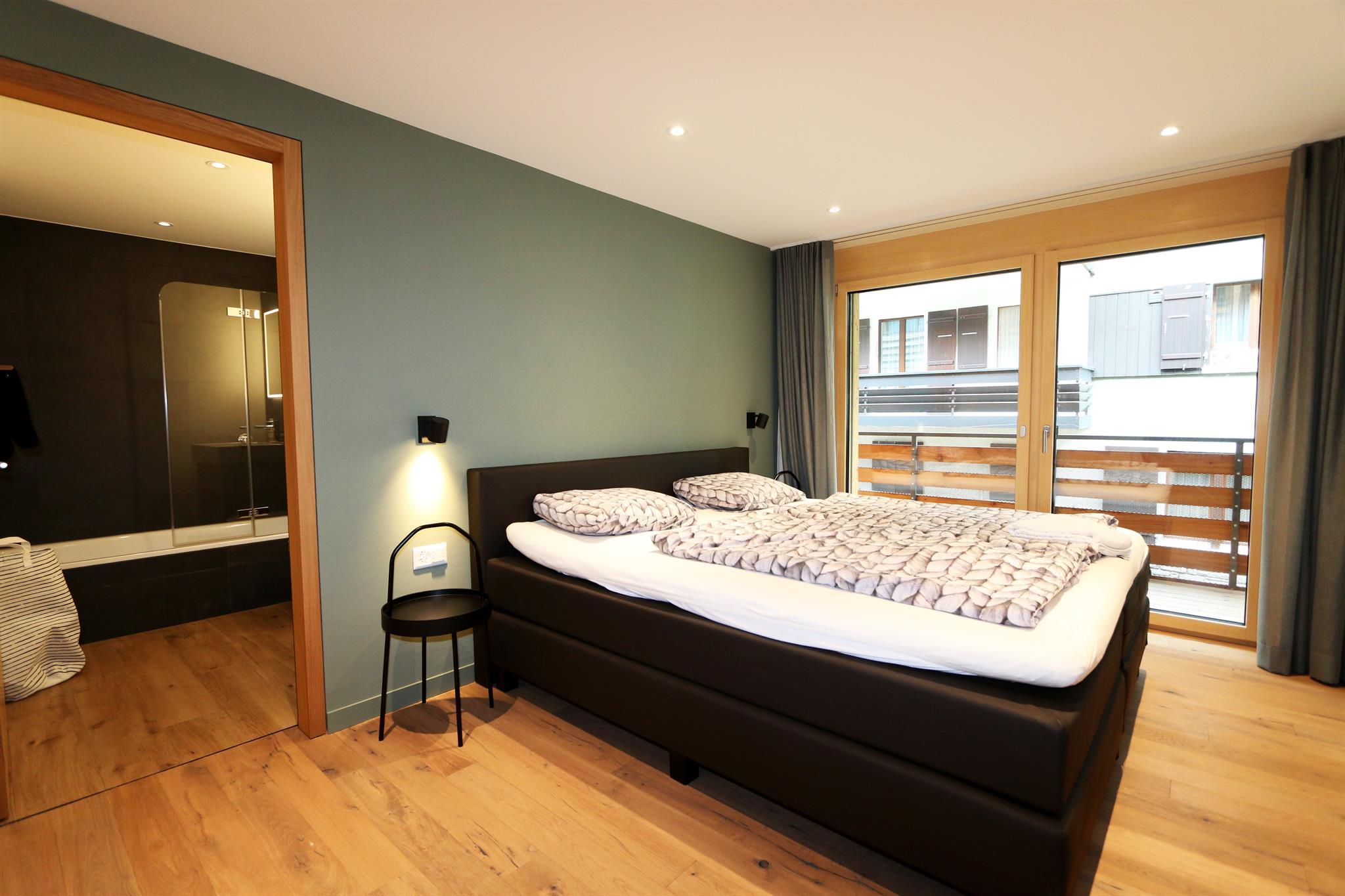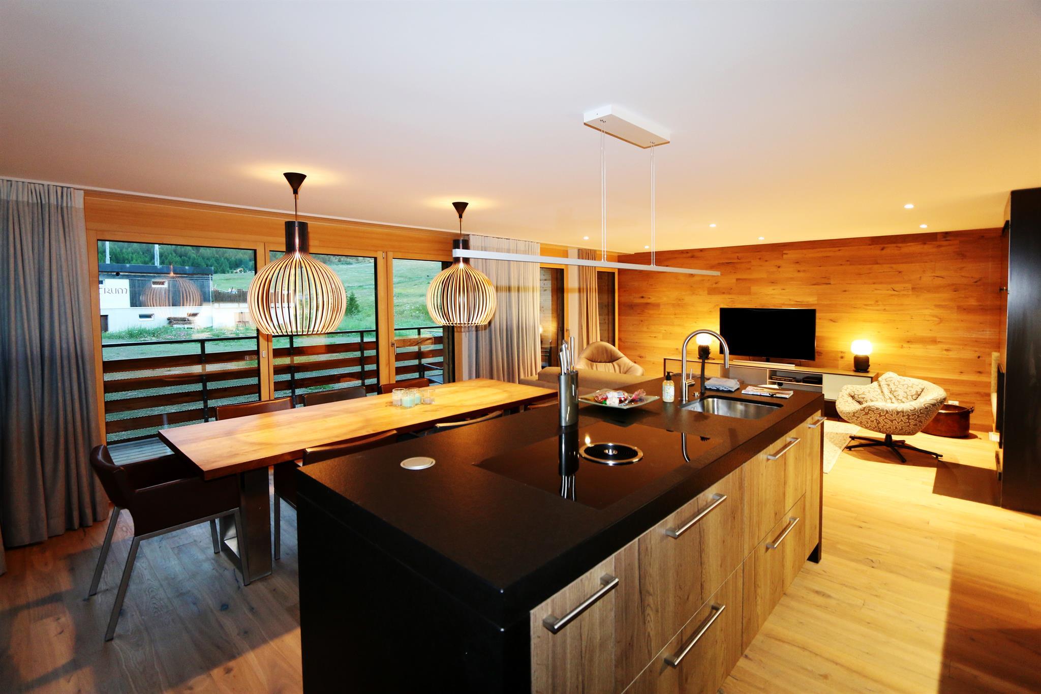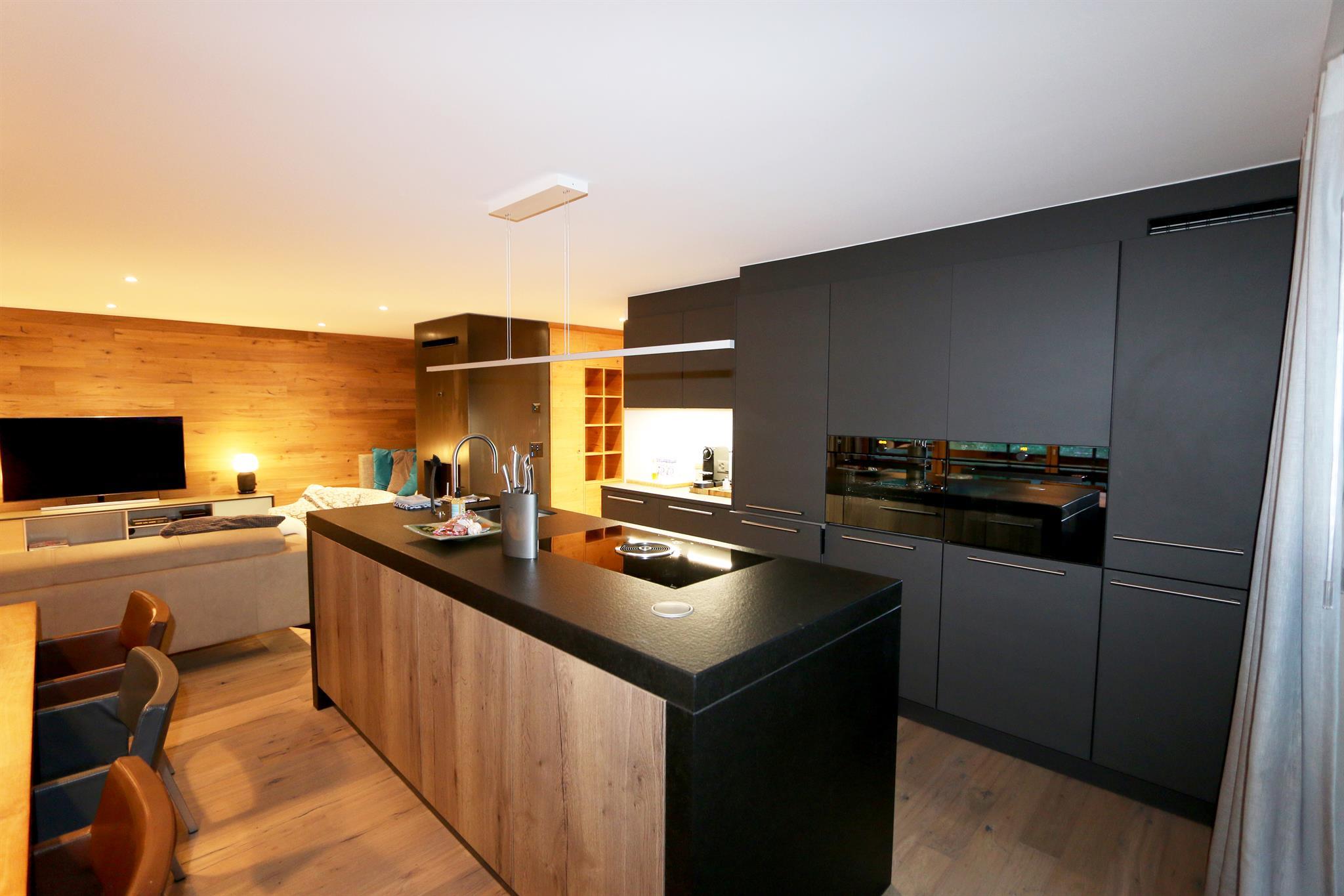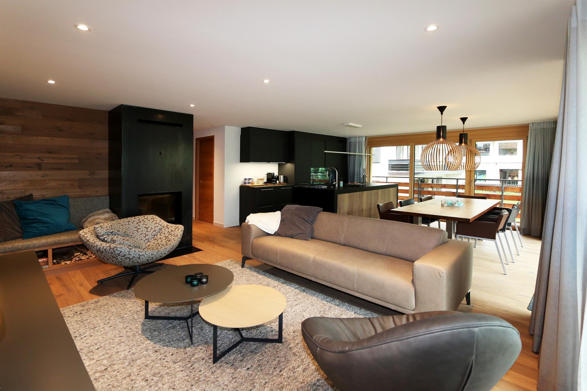 Die Wohnung verfügt über eine offene Küche mit Essbereich, Wohnzimmer mit Kamin (kein Holzservice) und Flatscreen-TV. Die Küche ist komplett ausgestattet mit Geschirrspüler, Kombi-Mikrowelle, Backofen, Bora-Induktionsherd, Kaffeemaschine, Toaster, Wasserkocher, Käsefondue-Set und Racletteofen. Panoramablick vom privaten Balkon und WLAN steht zur Verfügung.