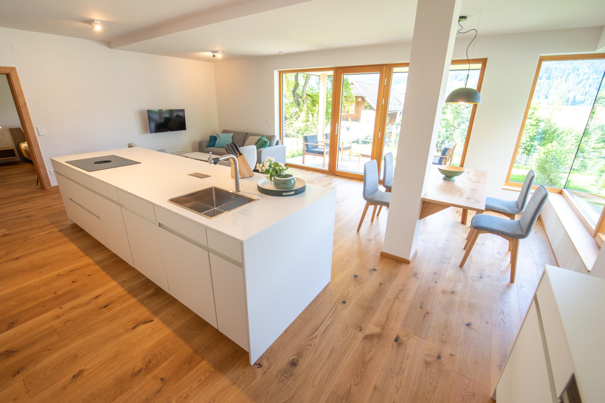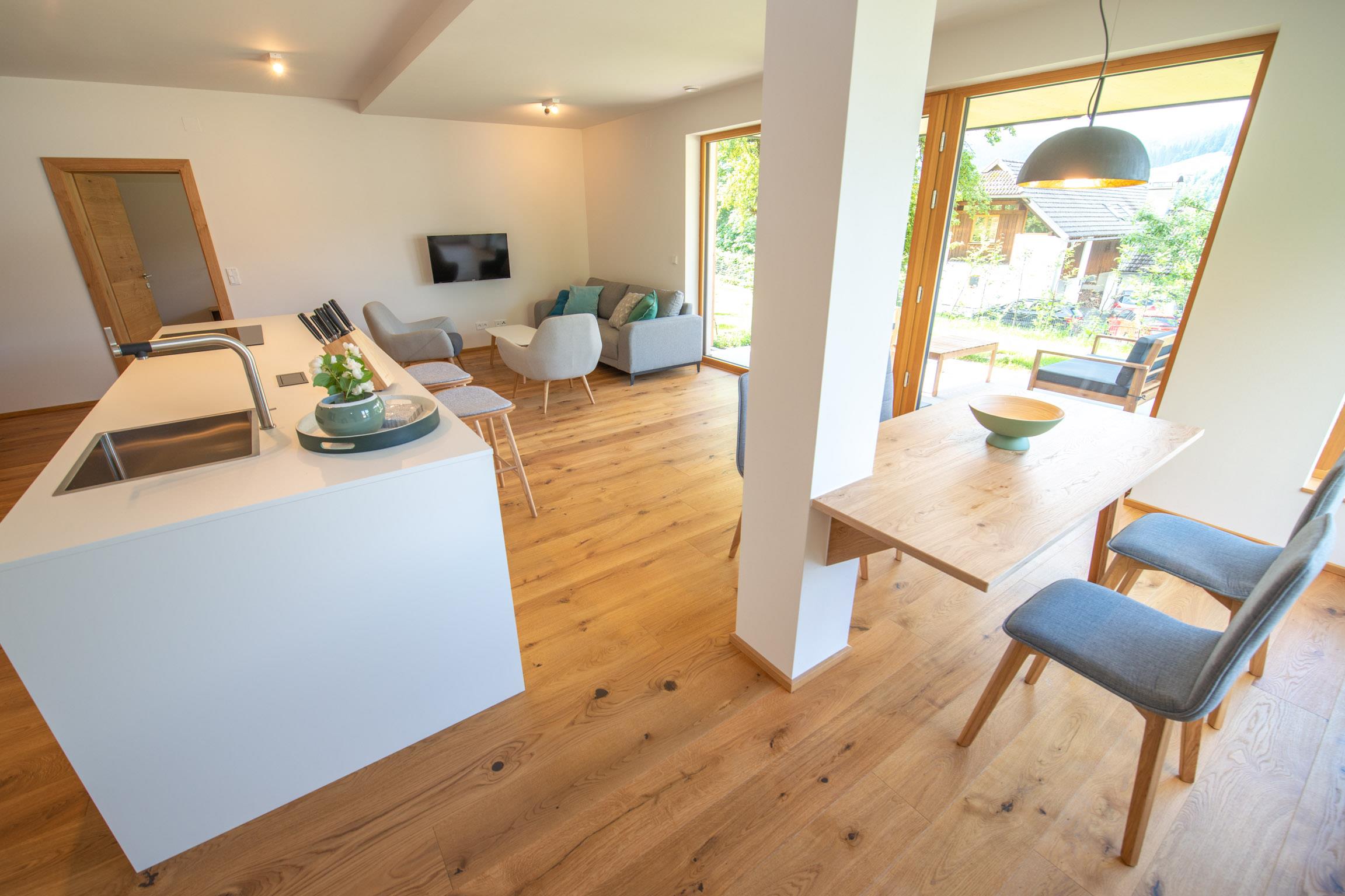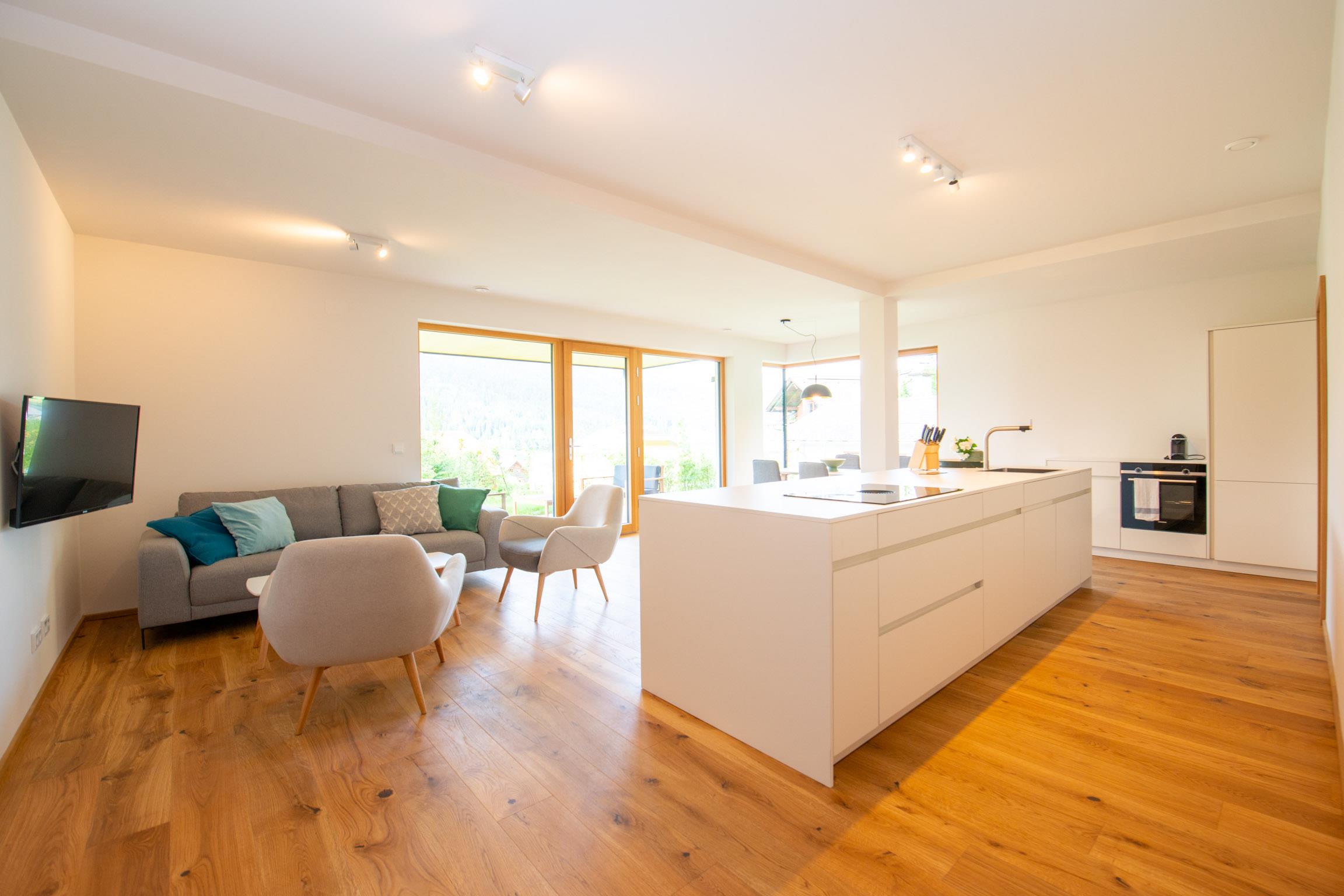 Neusach64 : Neubau im Juni 2020 fertiggestellt. 3 Ferienwohnungen in 2 Häusern in sehr ruhiger Lage in Neusach 64 , direkt am Waldrand gelegen. Der private Badestrand für Hausgäste ist ca 500 m entfernt und in wenigen Minuten zu Fuß erreichbar. Dort befindet sich neben einer Liegeweise auch eine kleine Badehütte mit WC/Dusche und Umkleide. Genießen Sie einen wunderbaren Ausblick auf den Weißensee. Für Hausgäste steht eine geräumige Sauna mehrmals wöchentlich zur Verfügung. Bequem mit dem kostenlosen Dorfbus von einer Ortschaft zur anderen. Der Dorfbäcker bringt morgens das frische Gebäck bis zum Haus. Idealer Ausgangspunkt für Wander- und Mountainbiketouren - direkt vom Haus aus. Parkplätze sind vor dem Haus und kostenlos. Hunde können auf Anfrage in der Nebensaison (Mai und Juni (evtl. Juli,August) und September und Oktober, November) in der Gartenwohnung F2 und Dachterrassenwohnung F3 mitgebracht werden. Extra werden je Hund 100 Eur pro Woche berechnet. Bitte nutzen Sie das Kommentar Feld um ihrem Gastgeber mitzuteilen, dass Sie eine Hund mitbringen. Weissensee Premium Card ist im Preis enthalten.