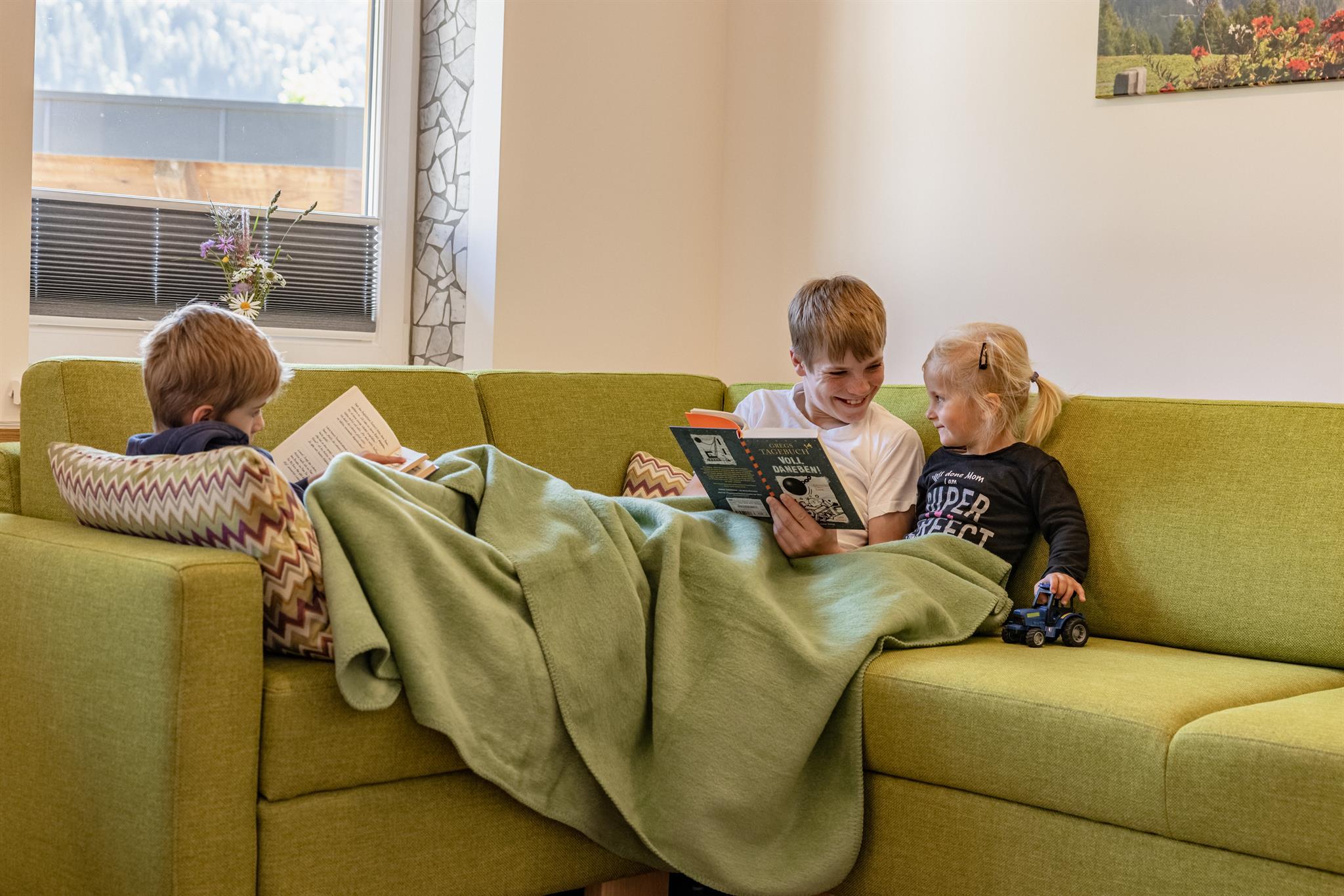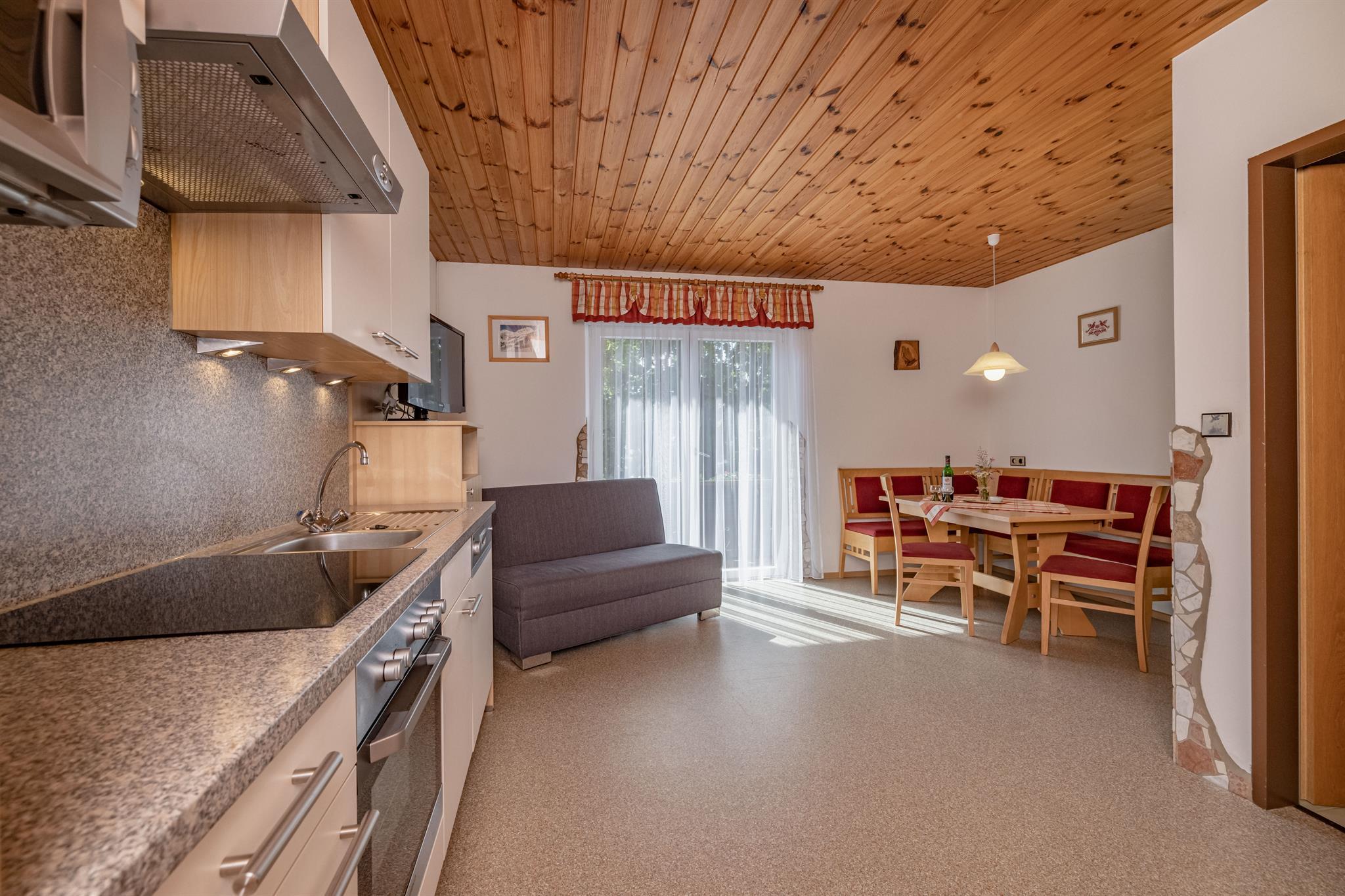 Unsere komfortablen Wohnungen, die alle mit Balkonen ausgestattet sind, laden dazu ein, bei einem Glas Wein und hofeigenen Produkten die malerische Aussicht zu genießen. Ideal für Familien ist unser Sandkasten, wo die Kleinen spielen können, während die Eltern sich auf unserer Liegewiese entspannen. Und keine Sorge, auch Ihre Haustiere sind herzlich willkommen!
