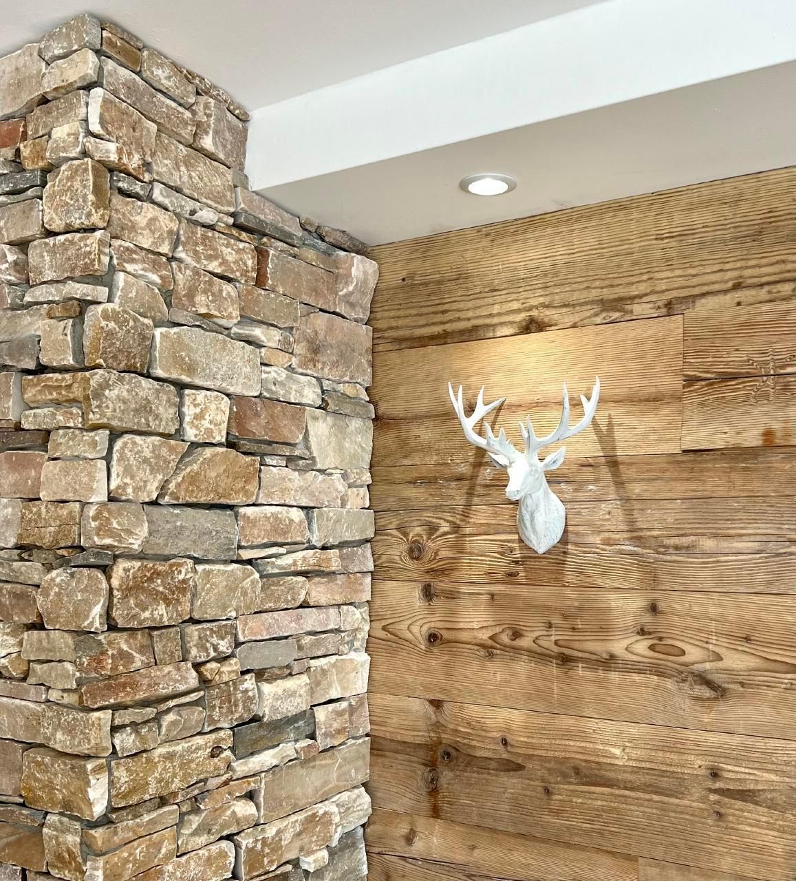Die Wohnung wurde im Oktober 2022 exklusiv mit Naturmaterialien wie Eiche-Echtholzparkett,Wandgestaltung in Naturstein und altem Holz erstellt.