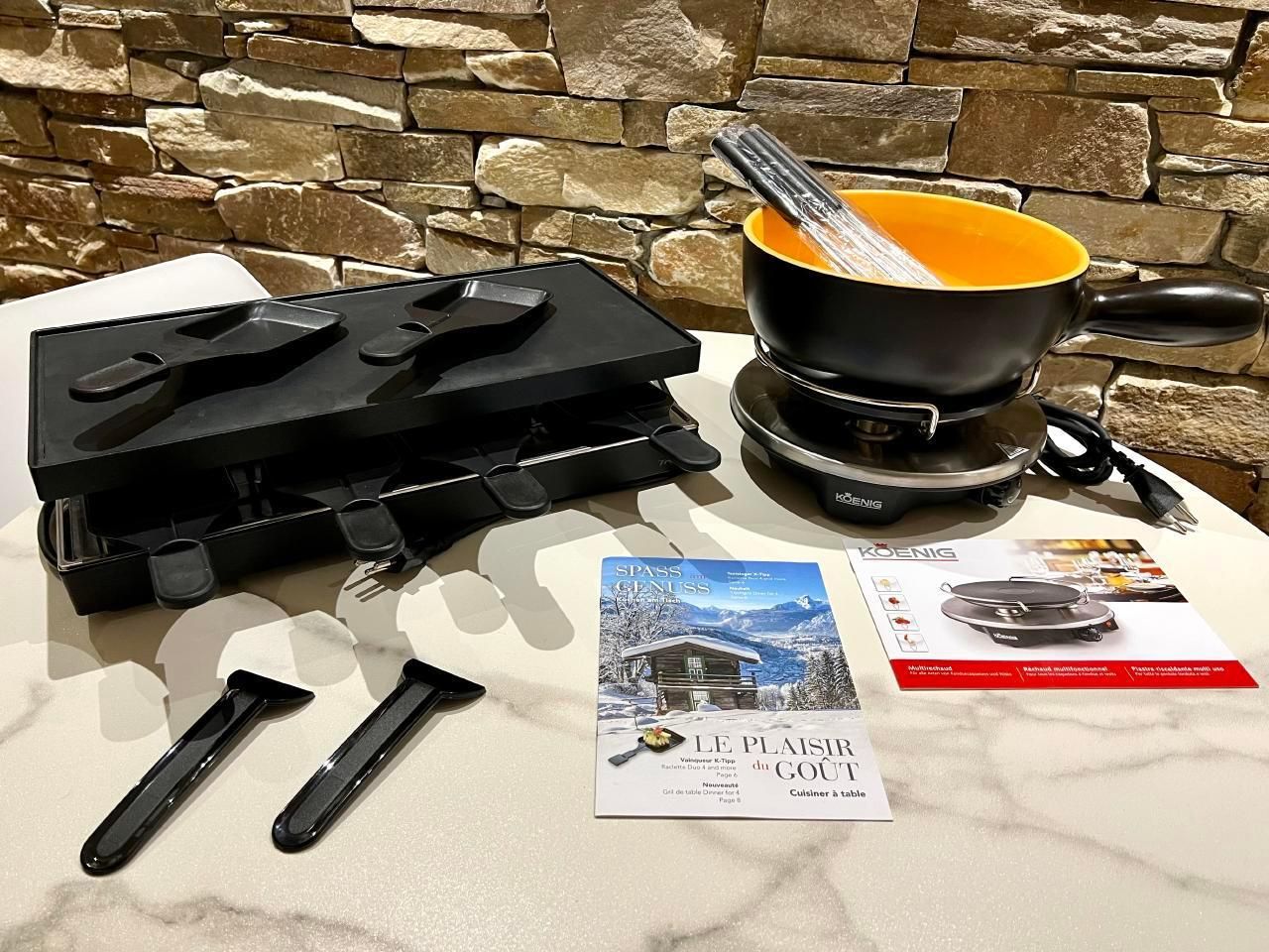 Küche mit Backofen, Ceran-Kochfeld, Kühlschrank mit Tiefkühlteil,Nespresso-Kapselmaschine/Wasserkocher, Fondue- und Racletteset