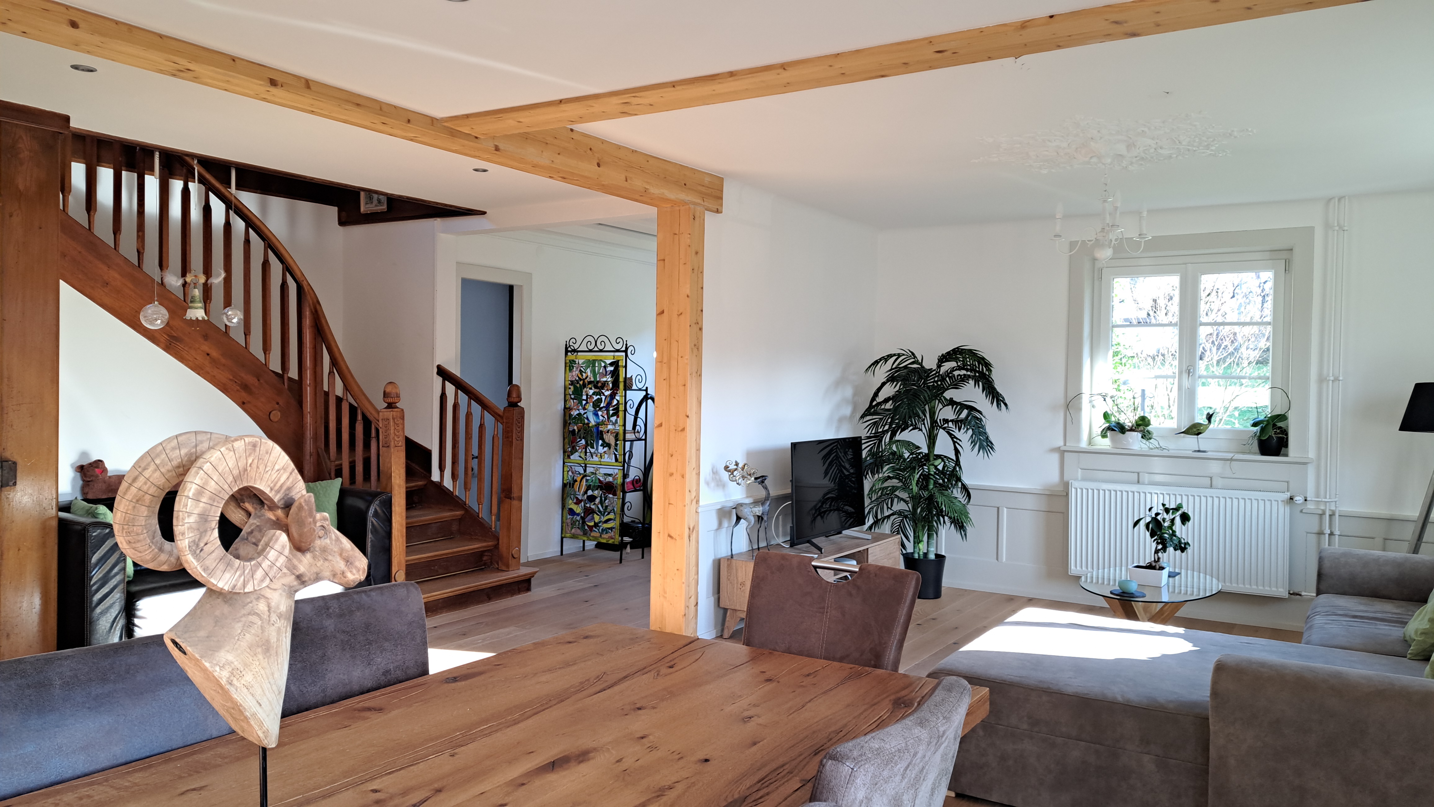 Im Herzen von Tavannes verbindet dieses Ferienhaus ländlichen Charme mit modernem Komfort. Umgeben von einem großen, bewaldeten Grundstück lädt es zur Entspannung inmitten der Natur ein. Das sorgfältig renovierte Innere erstreckt sich über drei Etagen und bietet 250 m² Wohnfläche. Das offene Erdgeschoss führt auf eine Terrasse mit Blick auf den Garten. Im Obergeschoss befinden sich drei Doppelzimmer und ein stilvolles Badezimmer, während das Dachgeschoss ein Büro und ein großes Dreibettzimmer beherbergt.Mit Platz für bis zu 10 Personen ist dieses Haus ideal für Familien- oder Freundesgruppen. Die Betten in verschiedenen Größen (90x200 bis 160x200) garantieren optimalen Komfort. Ein Schlafsofa ergänzt die Unterkunft. Entdecken Sie eine geräumige und ruhige Rückzugsmöglichkeit, perfekt, um den Grand Chasseral zu erkunden.