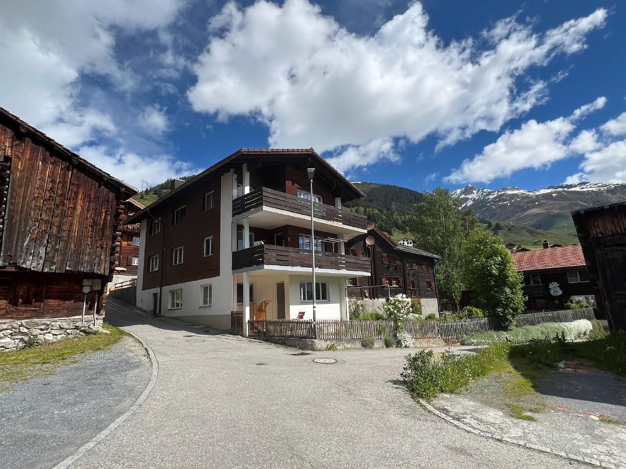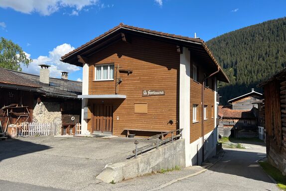 Die Ferienwohnung befindet sich im Erdgeschoss eines freistehenden Mehrfamilienhauses mit insgesamt drei Wohneinheiten. Sie liegt im Dorfkern von Rueras – ideal zum Entspannen und Entschleunigen. Vom Balkon aus geniessen Sie einen Blick auf die alten Häuser von Rueras sowie auf die Berge und das Tal.