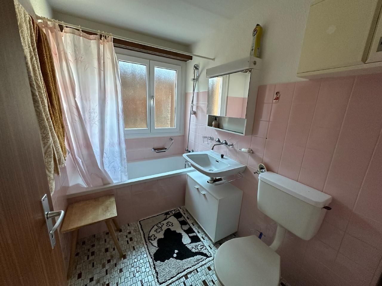 Die Wohnung war über lange Zeit das Zuhause einer Familie – und später ein beliebter Treffpunkt für Enkel und Urenkel. Daher gibt es nach wie vor eine Auswahl an Spielen, Farbstiften, Legos und mehr. Alles, was nicht als privat markiert ist, darf gerne benutzt und anschliessend wieder ordentlich verräumt werden.