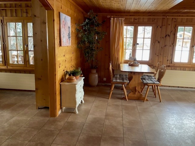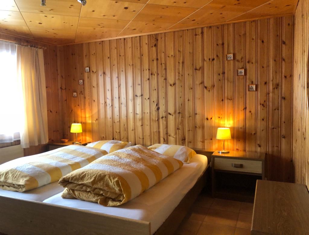 5-Zimmer-wohnung auf 2 Etagen, möbliert und bestehend aus: 3 Doppel- & 1 Einzelzimmer, Bad/WC, Dusche/WC, grosse separate Küche (Geschirrspüler) mit Essnische, komfortables Wohnzimmer mit TV, 2 Südbalkone, grosser Rasenvorplatz, Terrassennische mit Bestuhlung.