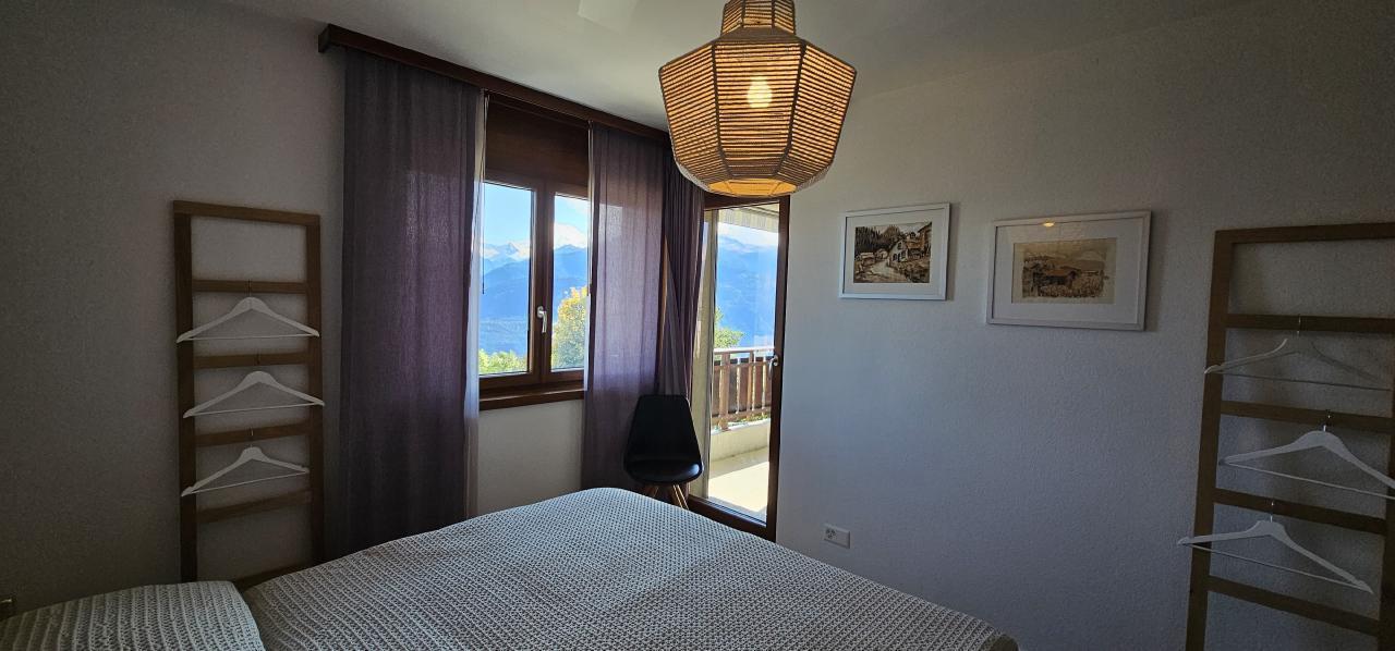 Innenbereich Neue 21/2-Zimmerwohnung 45 m2 in 3-stöckigem Familienhaus, 1. Stock mit Lift direkt ab Garage. Grosses Wohn/Esszimmer mit integrierter grosser, vollständig eingerichteter, neuer Küche. Geschirrspüler, Backofen, Nespresso-Kaffeemaschine. Im Wohnbereich grosser Esstisch und Cheminée-Ofen. Schlafzimmer Doppelbett mit 2 Einzelmatratzen und grosser Schrank. Internet-TV mit Flachbildschirm, W-LAN via Simcard gratis. Badezimmer mit grosser Dusche. Südlage mit grossem Balkon 12m2, Balkonmöbel. Bitte beachten: Nichtraucher, keine Haustiere erlaubt, nicht mehr als 2 Personen. Haus/Residenz 3-stöckiges Familienhaus vers la croix, 3km unterhalb Crans-Montana im Ortsteil Randogne, im Ortseingang. Sehr schöne, ruhige Lage mit direkter Sicht auf Berg und Tal. Privater Garagenplatz - kleiner Keller für Ski, Bushaltestelle Randogne 200m Entfernung. Skisportanlagen ca. 3km Entfernung, Golf ca. 4km. Sonstige Schlafzimmereinrichtung (Schlafzimmer1): grosser Schrank Sportmöglichkeiten in der Umgebung: Bergsteigen, Eislaufen, Golfplatz, Jagdmöglichkeit, Klettern, Mountainbiking, Paragliding, Radtouren, Reitplatz / Reitmöglichkeiten, Rodeln, Ski (alpin), Ski (Langlauf), Squash, TennisObjektart: