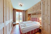 Die Wohnung verfügt über ein geräumigen und hellen Wohnbereich mit zwei Sofas, TV sowie einem Esstisch. Die Wohnung hat insgesamt drei Schlafzimmer: eines mit einem Doppelbett, eines mit zwei Einzelbetten und eines mit insegsamt 4 Kajütenbetten. Die Wohnung wird jedoch an maximal 6 Personen vermietet und nur auf Anfrage an 8 Personen. Die Küche wurde im Jahr 2021 komplett renoviert. Es stehen zwei Badezimmer zur Verfügung. Eines der Badezimmer ist mit einer Dusche und WC, das andere mit einer Badewanne, Bidet und WC ausgestattet. Vom Gartensitzplatz geniesst man eine atemberaubende Aussicht auf die umliegenden Berge.