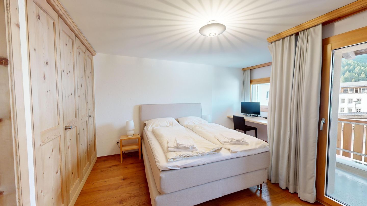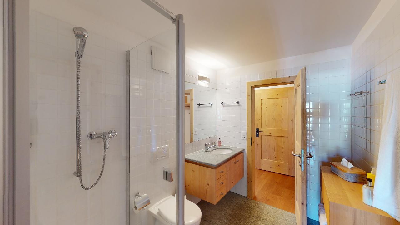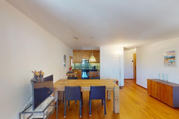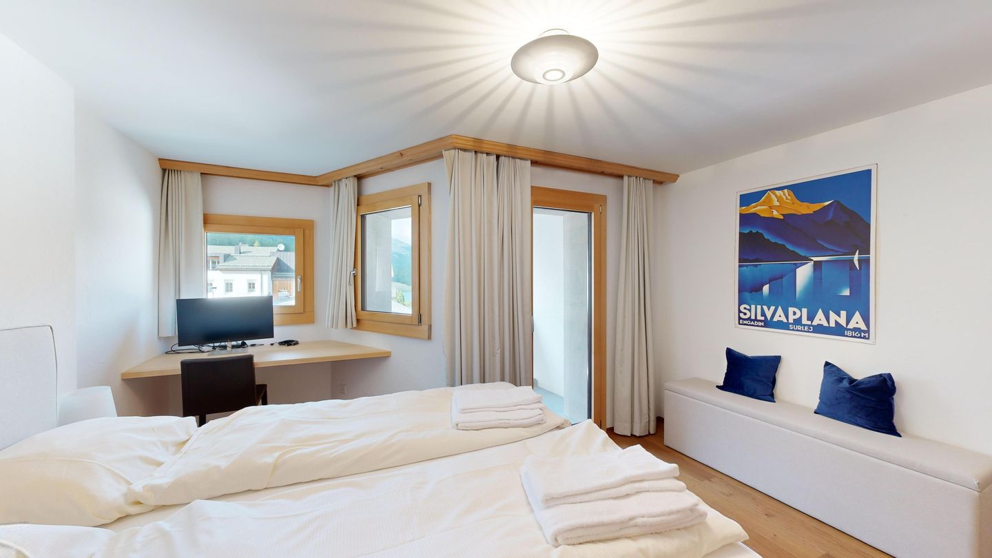 Die helle und stilvoll renovierte 2.5 Zimmerwohnung befindet sich im Herzen von Silvaplana. Sie verfügt über zwei Balkone in Richtung Nordosten und bietet eine einmalige Aussicht auf die Engadiner Seenlandschaft. Im grosszügigen und hellen Schlafzimmer befindet sich ein Doppelbett. Das von zwei Seiten zugängliche Badezimmer verfügt über eine Dusche. Die offene Küche ist komplett eingerichtet und es gibt einen grossen Esstisch für vier Personen. Das Wohnzimmer ist mit einem Sofa und einem Sessel ausgestattet. Ein Garagenparkplatz kann kostenpflichtig hinzugebucht werden, dieser verfügt über eine Ladestation für Elektrofahrzeuge (PLUG'N ROLL).