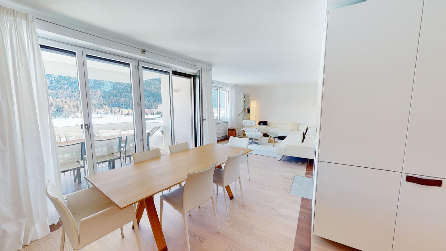 Die luxuriöse 5-Zimmer-Wohnung befindet sich an ruhiger und dennoch zentraler Lage in St. Moritz.