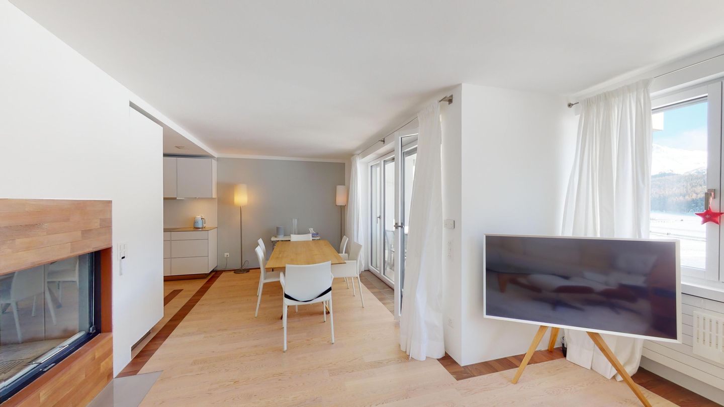 Ein besonderes Highlight dieser hochklassigen Wohnung ist die zentrale Lage mit atemberaubender Aussicht auf den St. Moritzersee und die beeindruckende Engadiner Bergwelt. Das Dorfzentrum und der St. Moritzersee sind in wenigen Gehminuten erreichbar. Die Wohnung wurde mit hochwertigen Materialien renoviert und bietet eine exklusive Einrichtung. Sie verfügt über 3 Schlafzimmer, 2 Badezimmer sowie ein separates Gäste-WC. Die offene, vollständig ausgestattete Küche geht nahtlos in den Essbereich über, der mit dem Wohnzimmer verbunden ist. Aus Sicherheitsgründen darf das Cheminée nicht benutzt werden.