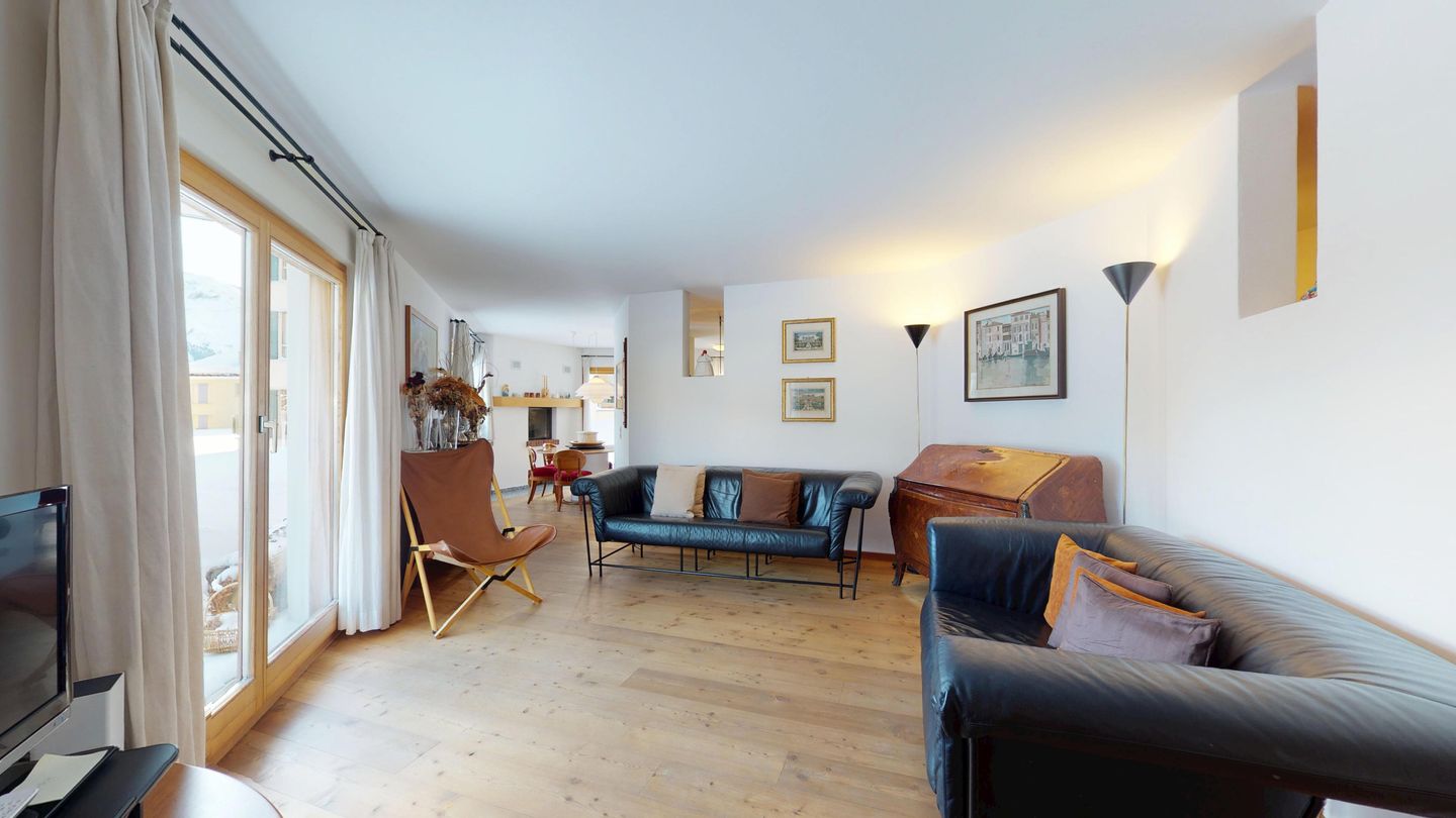 Die Talabfahrt-Skipiste vom Skigebiet Corviglia nach Samedan führt praktisch vor die Wohnungstüre. Somit können Sie am Morgen den Bus (Bushaltestelle fast vor dem Haus) nach Celerina nehmen und am Abend bequem bis vor die Wohnung fahren.
