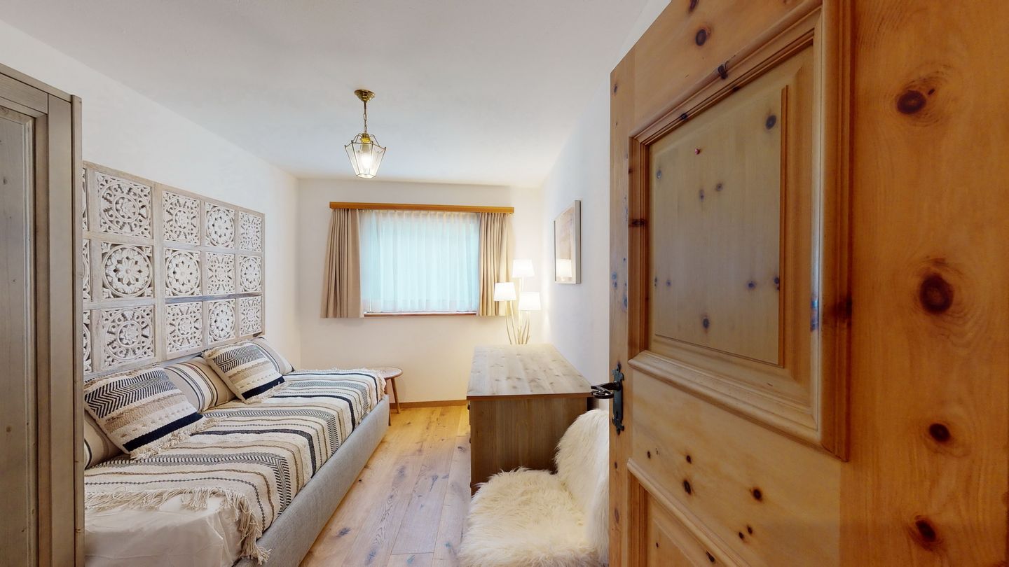 Die Wohnung befindet sich im ruihigen und verkehrsfreien Quartier Üerts. In etwa 5 Minuten zu Fuss erreicht man die Bushaltestelle. Der Lej da Champfér befindet sich ebenfalls etwa 5 Gehminuten entfernt.