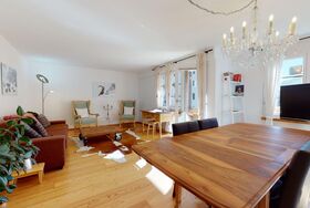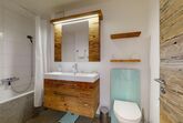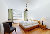 Vom geräumigen Wohnzimmer gelangt man auf den sonnigen Balkon, der Richtung Süden zeigt. Das Wohnzimmer besteht aus einer gemütlichen Essecke und einem bequemen Sofa (Möglichkeit Sofabett - Maximalbelegung 4 Person). Die Wohnung verfügt über ein Schlafzimmer mit einem Doppelbett und einem modernen Kleiderschrank. Die renovierte Küche ist komplett ausgestattet. Im Badezimmer befindet sich eine Badewanne.