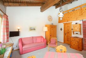 Helles und gemütliches Apartment auf 2 Stockwerken mit gepflegt eingerichtetem Wohn- und Esszimmer in Arvenholz mit Sofa- und Fernsehecke. Auf der Galerie finden Sie zwei Einzelbetten. Im Eingangsbereich der Wohnung befindet sich die Küche. Ein Badezimmer mit Dusche steht ebenfalls zur Verfügung. Waschmaschine und Trockner im Untergeschoss des Hauses zur Mitbenützung vorhanden. Ski- und Skischuhraum sind ebenfalls im Haus vorhanden. Ein Garagenparkplatz kann kostenlos genutzt werden. In der Garage steht eine Ladestation für Elektroautos zur Verfügung.
