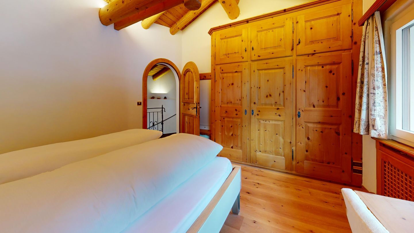 Das grosszügige und gemütliche Wohnzimmer lädt zum Verweilen ein. Hier können Sie sich in einer modernen Umgebung entspannen, die dennoch von der Wärme des Holzes und der Authentizität traditioneller Möbel geprägt ist. Die Wohnung verfügt über eine offene Küche und einen Essbereich. Das geräumige Schlafzimmer verfügt über ein komfortables Doppelbett und garantiert erholsame Nächte.