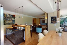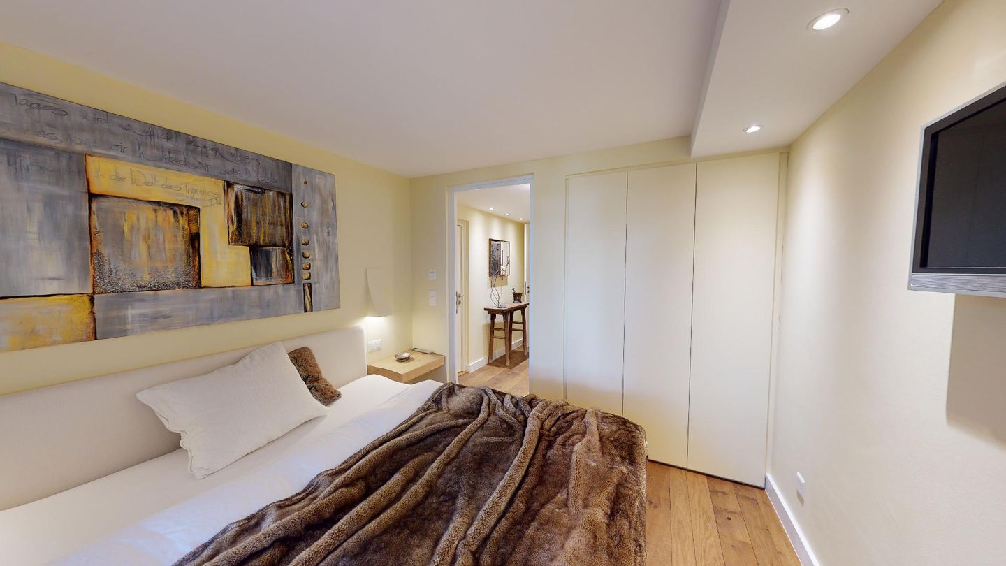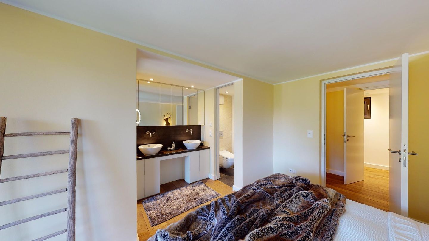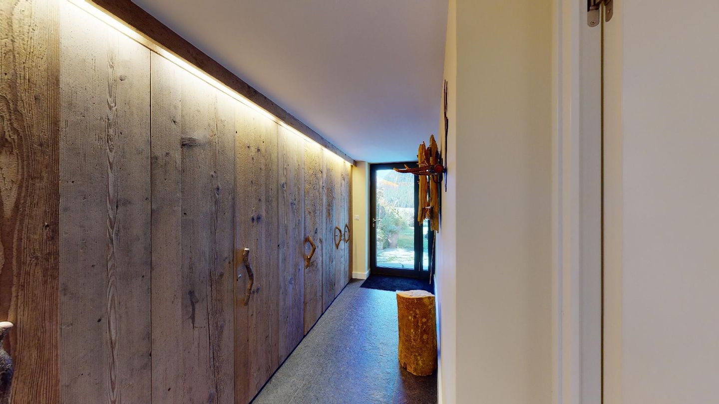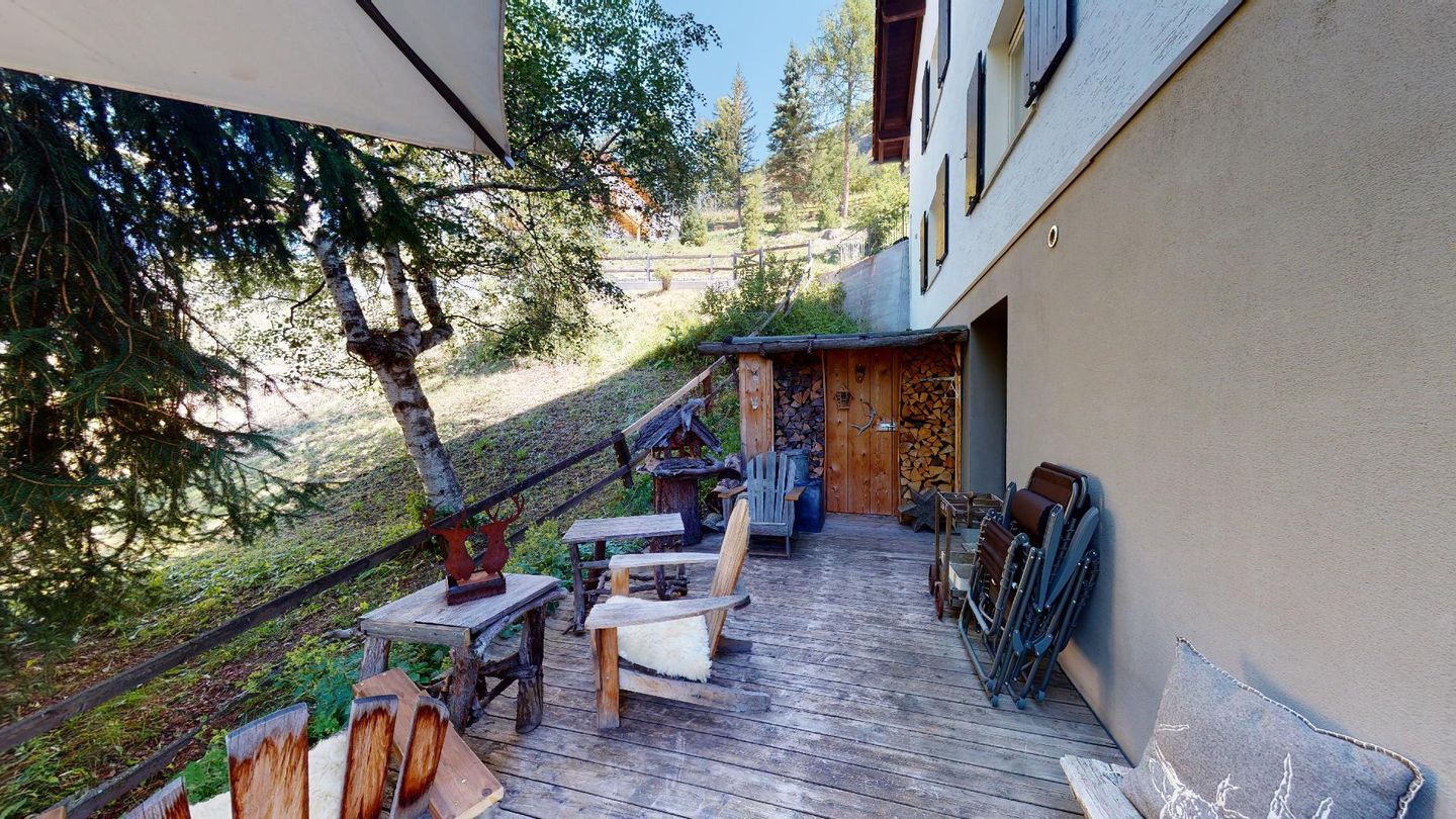 Über einen separaten Eingang gelangen Sie in das Entrée der Wohnung. Die Wohnung verfügt über zwei Doppelschlafzimmer mit jeweils eigenem Badezimmer/Dusche. Ein Schlafzimmer hat einen separaten begehbaren Kleiderschrank. Das schöne Wohnzimmer bietet eine offene Küche, einen Esstisch sowie Sitzgelegenheiten und einen Kamin. Vom Wohnzimmer geniesst man einen herrlichen Panoramablick auf die Engadiner Bergwelt. Ein weiteres Highlight ist die grosse Terrasse. Weiter gibt es in der Wohnung eine Fernsehecke sowie einen Abstellraum. Seitlich vom Haus befindet sich ein Schopf, in welchem Sportgeräte abgestellt werden können. Die Wohnung wurde mit hochwertigen Materialien ausgebaut und das Holz wurde mit modernen Elementen abgestimmt.