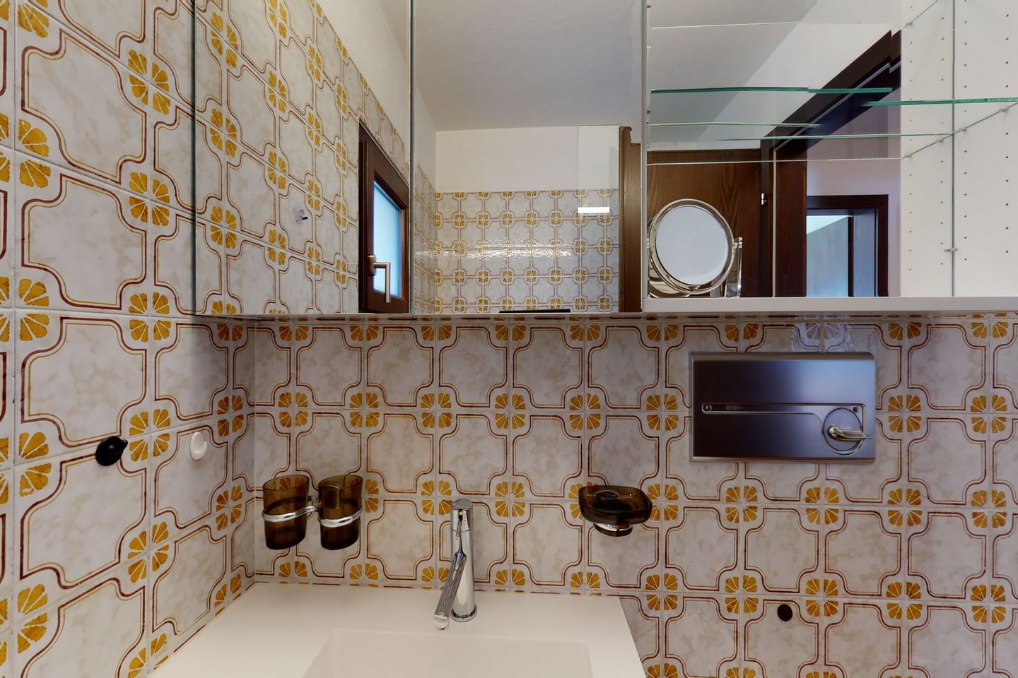 Vom geräumigen Wohnzimmer mit Kamin gelangt man auf den sonnigen Balkon, der Richtung Süden zeigt. Das Wohnzimmer besteht aus einer gemütlichen Essecke und einer Polstergruppe. Die Wohnung verfügt über zwei Schlafzimmer. Das Elternschlafzimmer verfügt über ein Doppelbett und das Kinderzimmer über zwei Einzelbetten mit einer dritten Schlafmöglichkeit. Die moderne Küche ist komplett ausgestattet. Ein Badezimmer bietet eine Badewanne, bei dem anderen handelt es sich um ein Gäste WC.