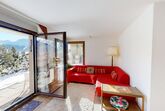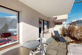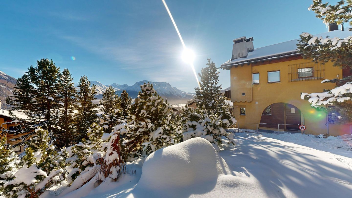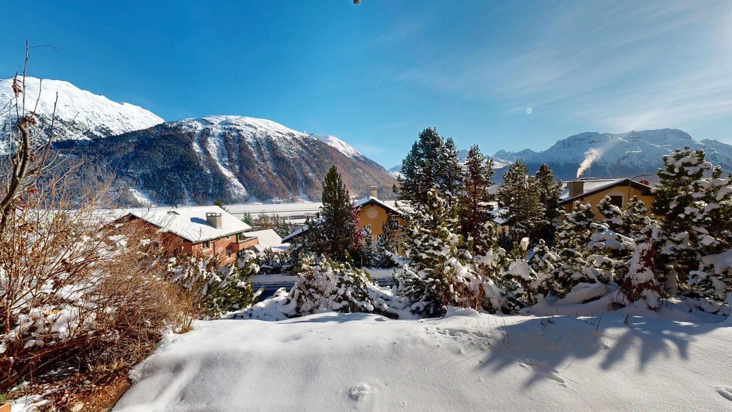 Die Wohnung befindet sich über den Dächern von Samedan und eignet sich für motorisierte Personen.