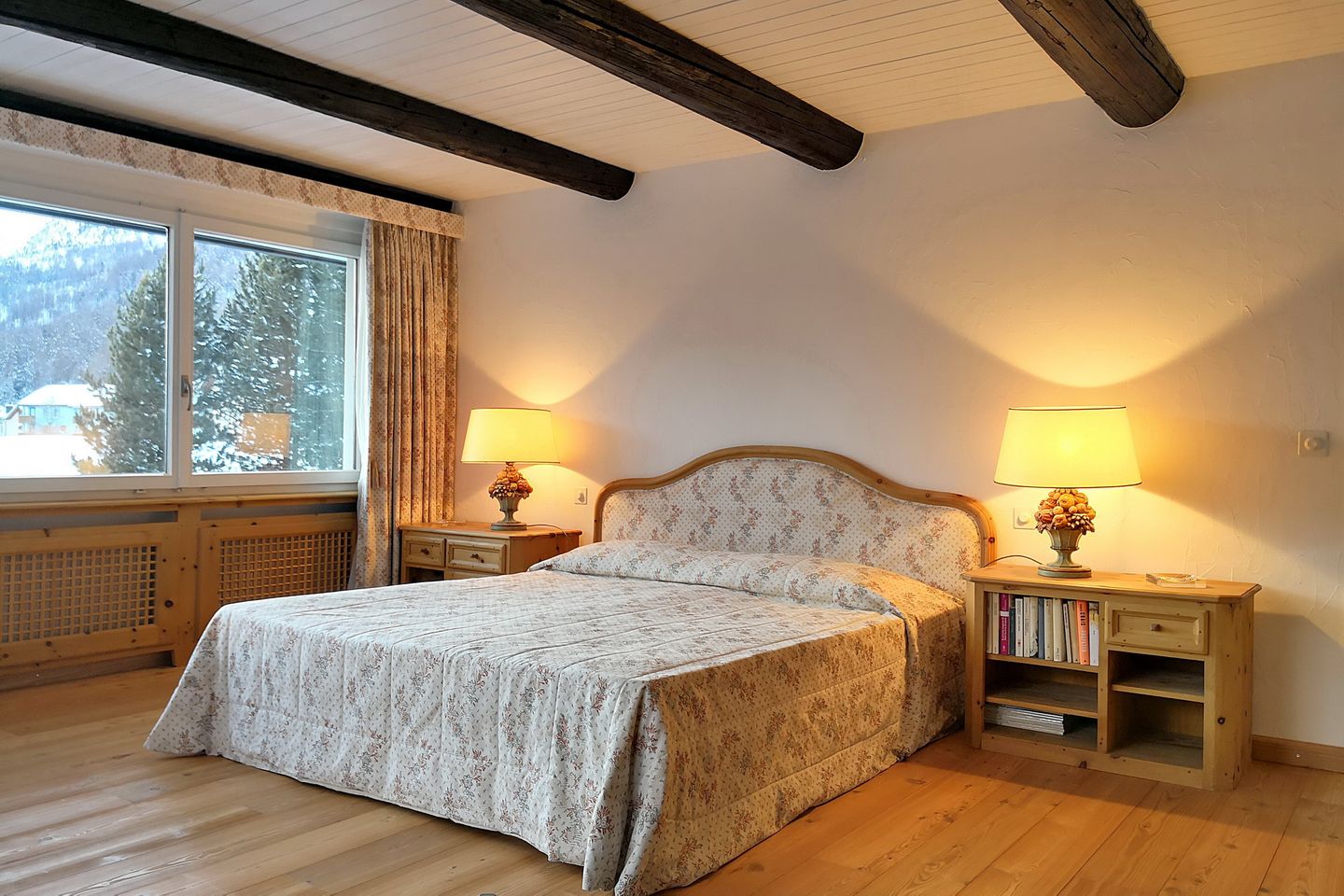 Die Wohnung verfügt über 2 Schlafzimmer mit je einem en-suite Badezimmer (Badewanne/Dusche). Das Elternschlafzimmer ist mit einem grossen Doppelbett ausgestattet. Das Schlafzimmer verfügt über viel Stauraum und einem wunderschönen Blick in die Engadiner Bergwelt. Das zweite Schlafzimmer verfügt über 2 Einzelbetten, welche auch als Doppelbett benützt werden können. Auf Anfrage stehen in diesem Schlafzimmer 2 weitere ausklappbare Einzelbetten zur Verfügung. Die Wohnung verfügt weiter über ein Gäste-WC. Die Küche ist komplett eingerichtet und in einem separatem Raum. Das Wohnzimmer ist sehr grosszügig gestaltet und ist mit einem grossen Chemineé ausgestattet. WLAN und TV stehen zur freien Verfügung.