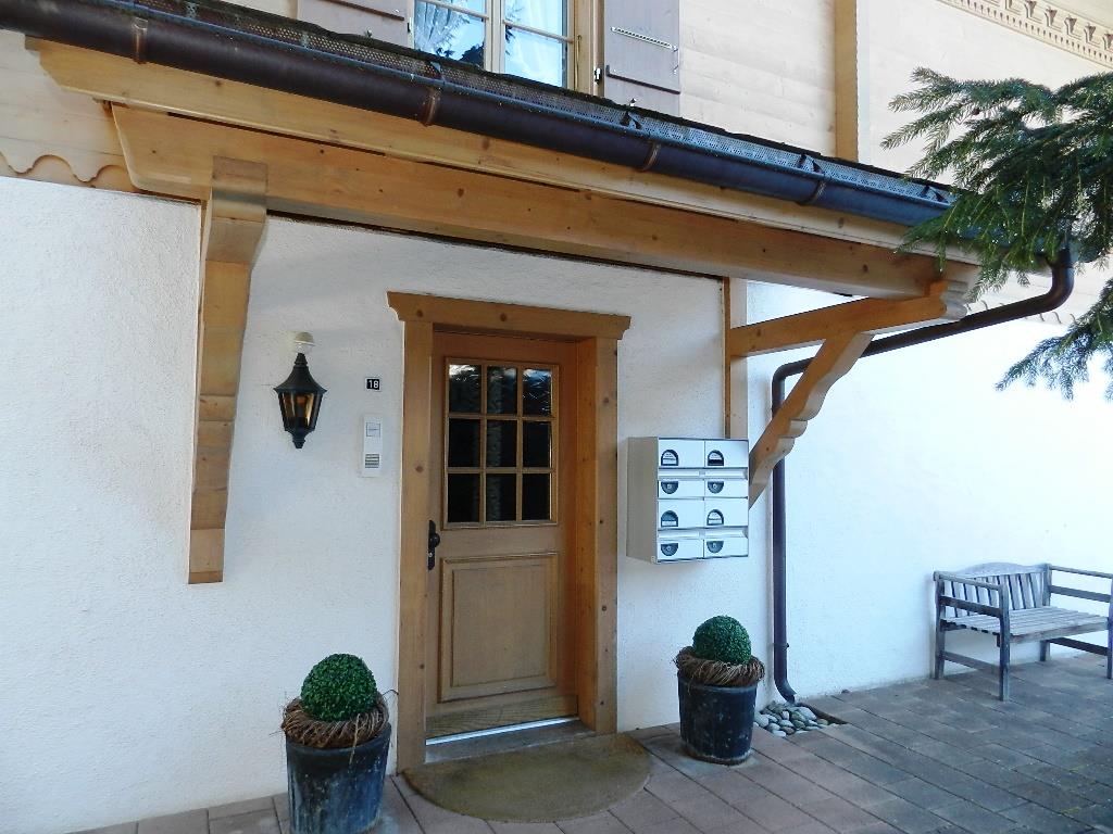 3-Zimmerwohnung (80m2) im 1. Stock eines 2003 erbauten Mehrfamilienhauses in Gstaad. 5 Gehminuten vom Zentrum und Bahnhof entfernt. Ruhige Lage, sonnig und Teilsicht auf das Oldenhorn. Nahe der Skipisten und Langlaufloipen gelegen. Idealer Ausgangspunkt zum Wandern. 1 grosser möblierter Balkon. 1 Garagenplatz und 1 offener Parkplatz sowie Waschküche mit Waschmaschine und Wäschetrockner zur gemeinschaftlichen Benutzung stehen zur Verfügung.