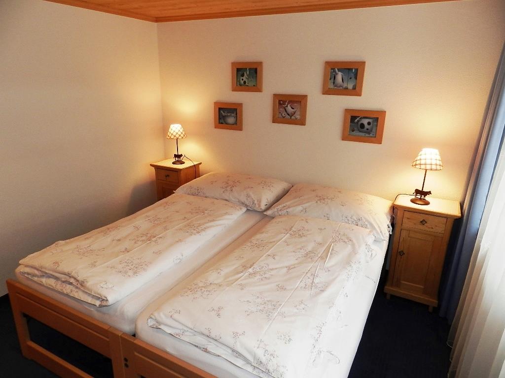 Wohn-/Esszimmer mit Schwedenofen, offener Küche (u.a. ausgestattet mit Kapsel-Kaffeemaschine (Nespresso) sowie Fondue- und Raclette-Set). Sofa sowie TV. 2 Doppelschlafzimmer (1x160x200cm und 2x90x200cm). 1 Badezimmer mit Dusche/WC und ein separates Gäste-WC. Gemeinsame Waschküche. WiFi.