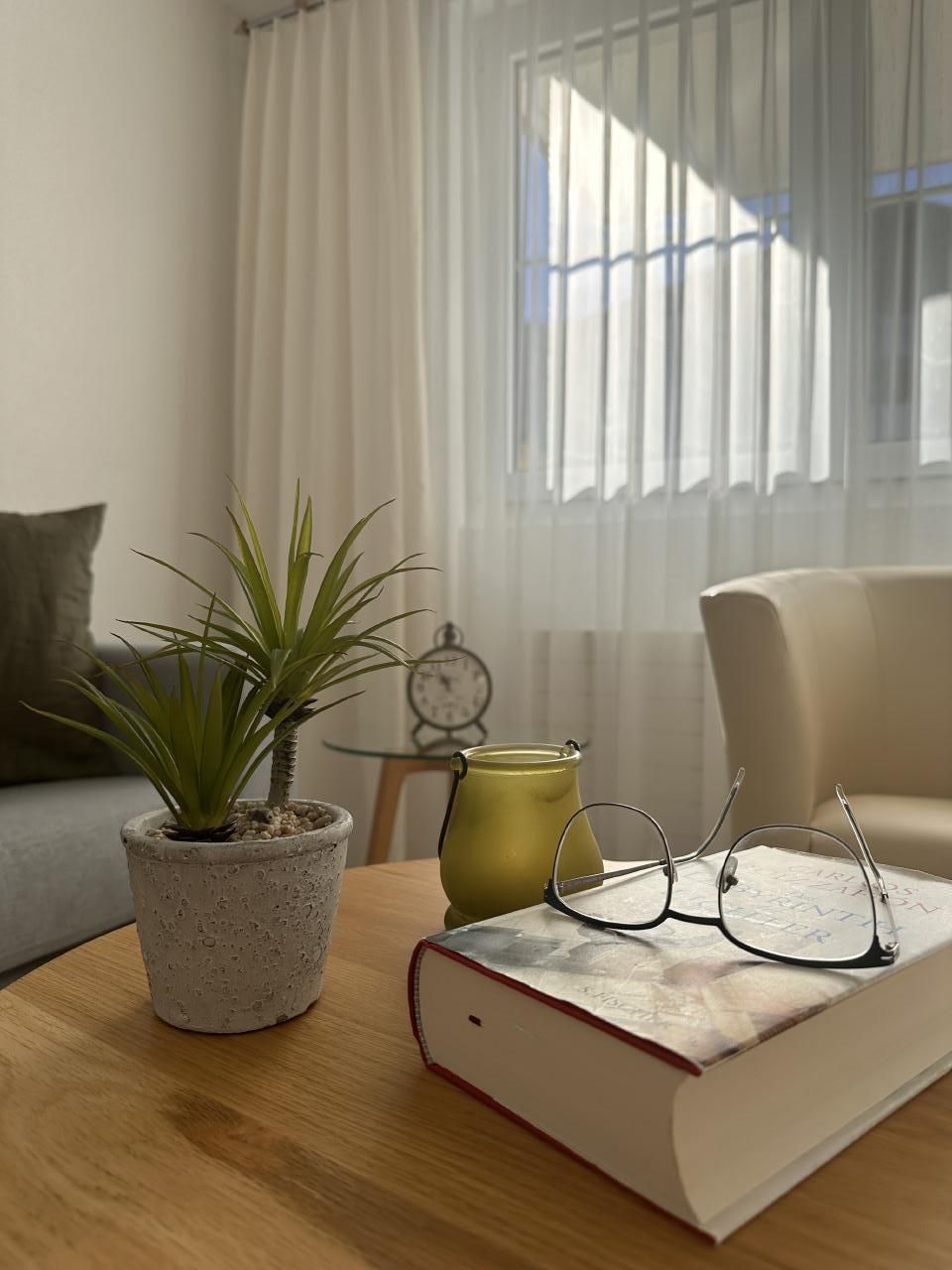 Innen lädt die Wohnung mit einer durchdachten Ausstattung zum Wohlfühlen ein. Das großzügige Schlafzimmer ist mit bezogenen Betten, einem geräumigen Schrank inklusive Kleiderbügeln sowie einem Spiegel ausgestattet und bietet die Möglichkeit, ein Kinderbettchen oder Zusatzbett hinzuzufügen. Im Wohnzimmer erwarten Sie ein Flachbildschirm und W-LAN-Anschluss für gemütliche Abende. Die Küche ist mit allem Komfort wie Wasserkocher, Kaffeemaschine, Ofen und Kühlschrank, inklusive kleinem Gefrierfach, ausgestattet. Küchentücher und Spülmittel für den Geschirrspüler stehen bereit. Ein besonderes Highlight für Familien: ein Kinderspielzimmer mit verschiedensten Spielsachen und eine hauseigene Bibliothek, aus der Sie sich Bücher ausleihen können.