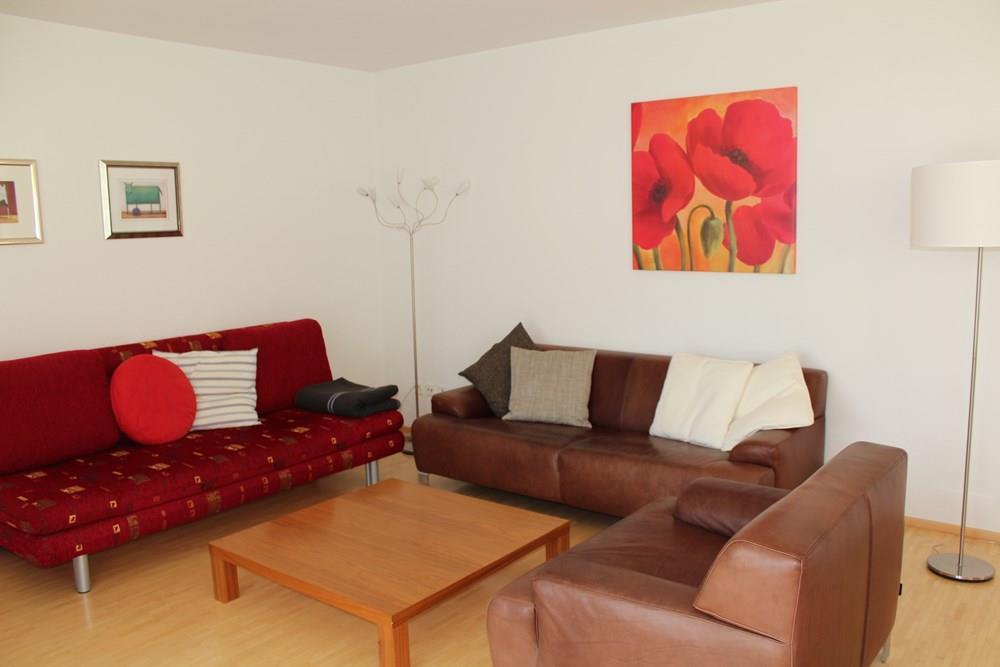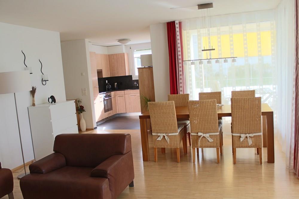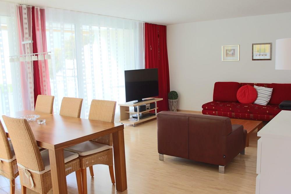 3 ½ Zimmerwohnung (ca. 87m2) im EG; Mehrfamilienhaus mit Lift, Balkon, Autoabstellplatz in Garage; Mitbenützung des Skiraumes und der Waschmaschine; Küche, Backofen mit Steamer, 4 Plattenglaskeramikherd, Kühlschrank mit Tiefgefrierfach, Geschirrspülmaschine; Bad/WC und Dusche/WC; 2 Schlafzimmer mit je 1 Doppelbett; Wohnzimmer mit Polstergruppe, Essecke; Bettwäsche, Frottéewäsche, Küchentücher, Duvet nordisch; TV, Abfallsäcke blau; Haustiere nicht erlaubt; Nichtraucher-Wohnung.