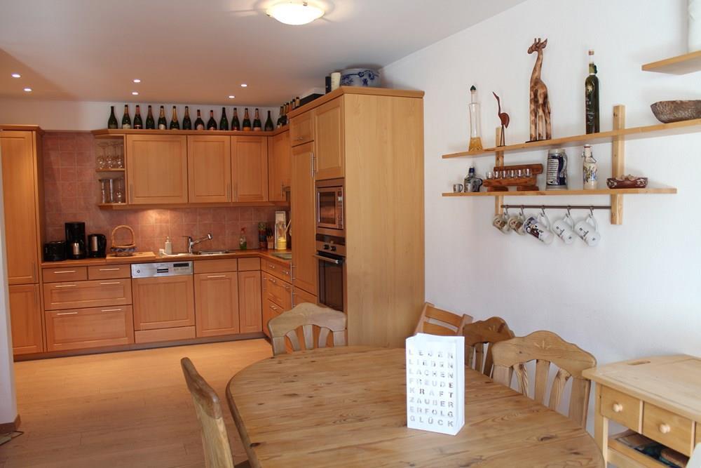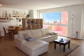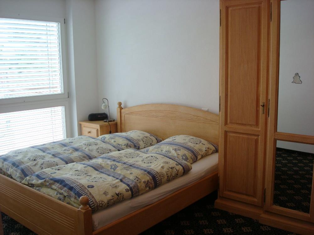 3 Zimmerwohnung (ca. 98m2) im 2. OG, Mehrfamilienhaus mit Lift, Balkon, Autoabstellplatz in Garage, Mitbenützung des Skiraumes. Waschmaschine in der Wohnung. Küche mit Backofen, 4-Plattenglaskeramikherd, Kühlschrank mit Tiefgefrierfach, Geschirrspülmaschine; 1 Bad/WC und 1 DU/WC; 2 Schlafzimmer mit je 1 Doppelbett; Wohnzimmer mit Polstergruppe, Essecke; Bettwäsche, Frottéewäsche, Küchentücher, Duvet nordisch; Telefon, TV, Abfallsäcke blau. Haustiere nicht erlaubt. Nichtraucher-Wohnung!