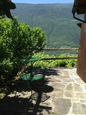 Komfortabel und stilvoll eingerichteter Rustico in Malvaglia mit wunderschöner Panoramaaussicht ins Bleniotal und auf die Berge.