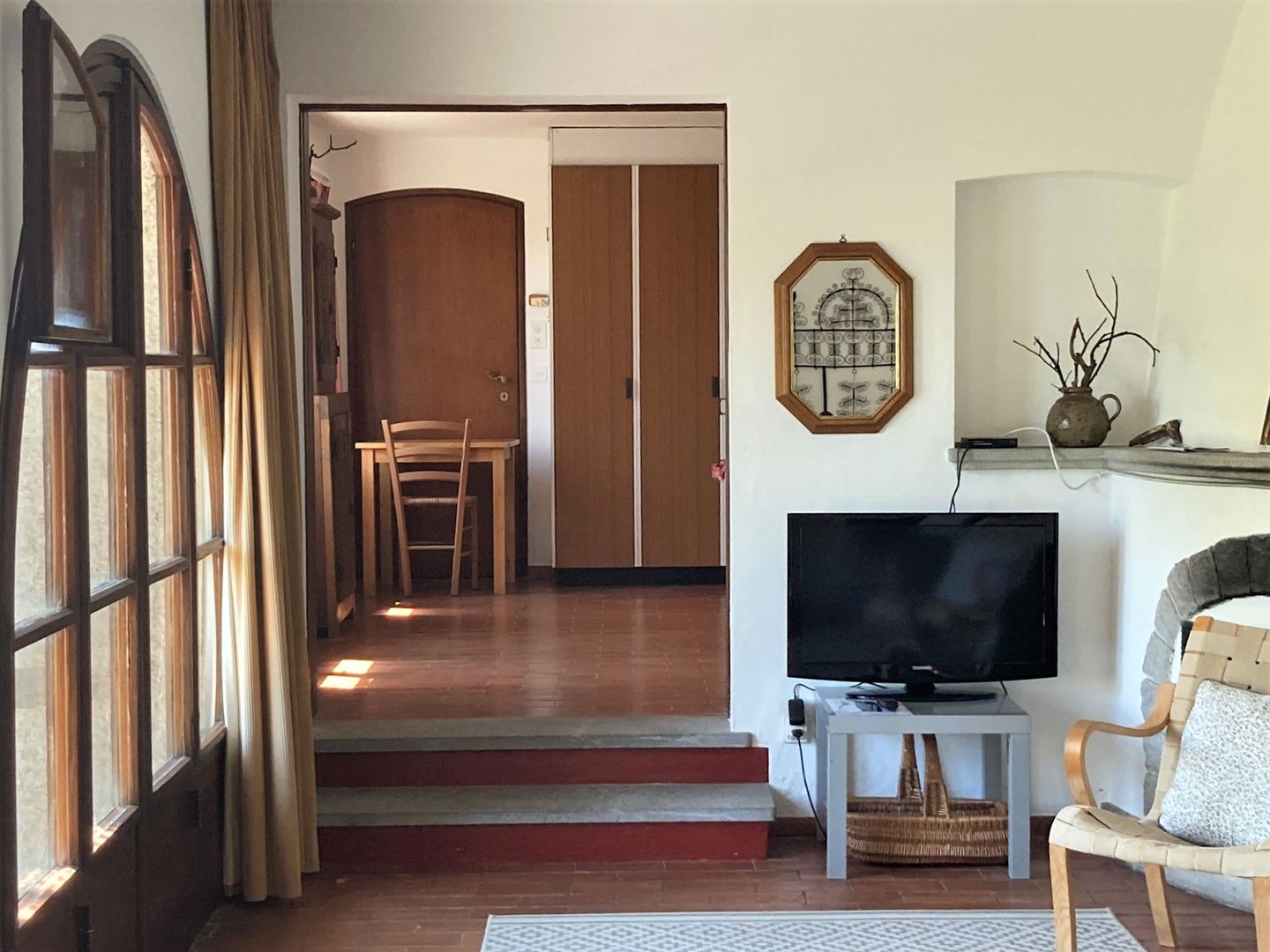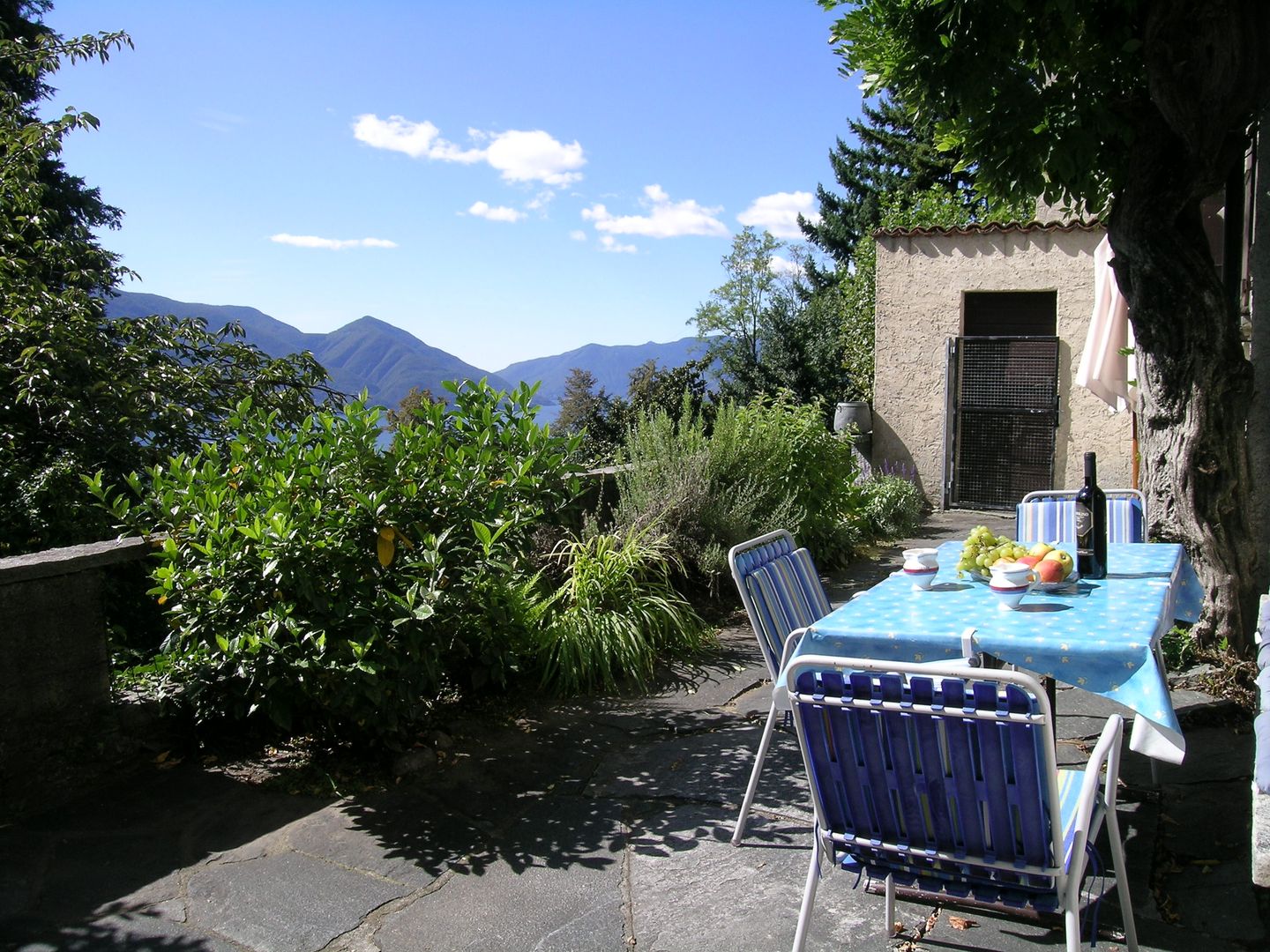 Das 2.5 Zimmer-Ferienhaus für 2 bis 4 Personen ist einfach und zweckmässig eingerichtet und verfügt über ein grosses, helles Wohnzimmer mit Clubtisch und Kamin, einem Schlafsofa für zwei Personen. Komplett eingerichtete Küche mit Esstisch, ein grosszügiges Schlafzimmer mit französischem Bett, sowie Dusche / WC. Gemütlicher Terrassensitzplatz, Tisch mit 4 Stühlen und 2 Kippstühlen. Von hier geniessen Sie in aller Ruhe den Blick über den Lago Maggiore und die Berge in Richtung Italien. Parkplatz vor dem Haus. Der Zugang zur Wohnung vom Parkplatz führt über eine Wendeltreppe nach unten.