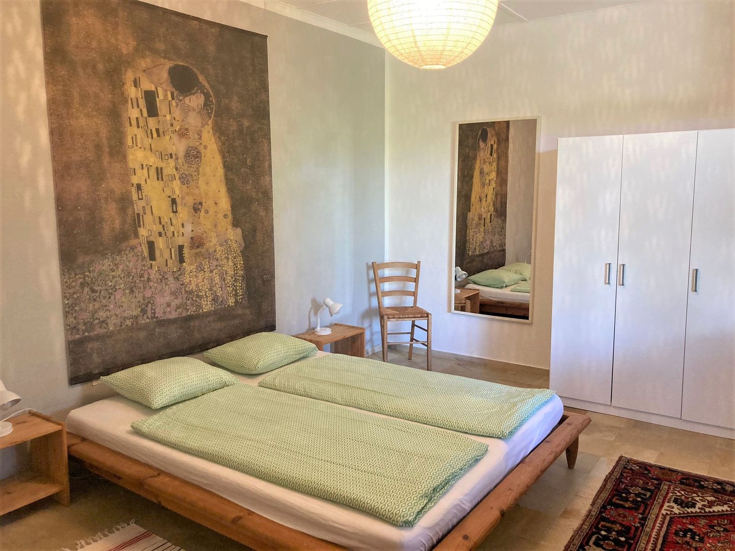 • Schlafzimmer mit französischem Bett 160 x 200 cm (2 Matratzen)