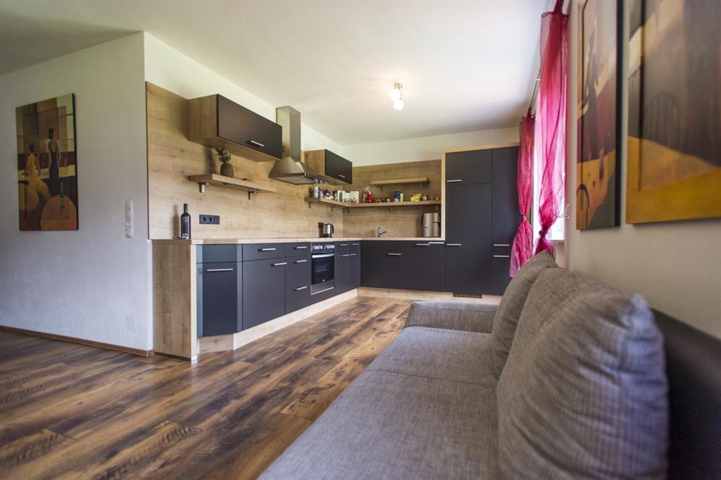 Top 6 bietet auf ca. 45 m² Platz für bis zu 4 Personen. Diese Wohnung verfügt über 1 Schlafzimmer, einen Wohnraum mit ausziehbarer Couch, Küchenzeile und Essgruppe sowie ein Bad mit Dusche und WC.