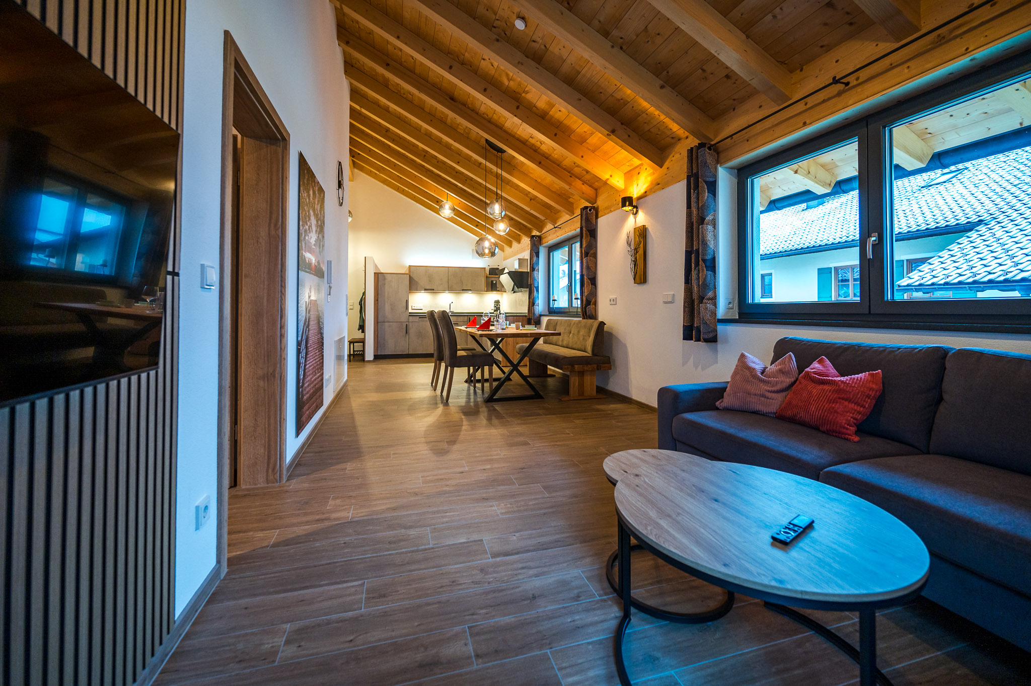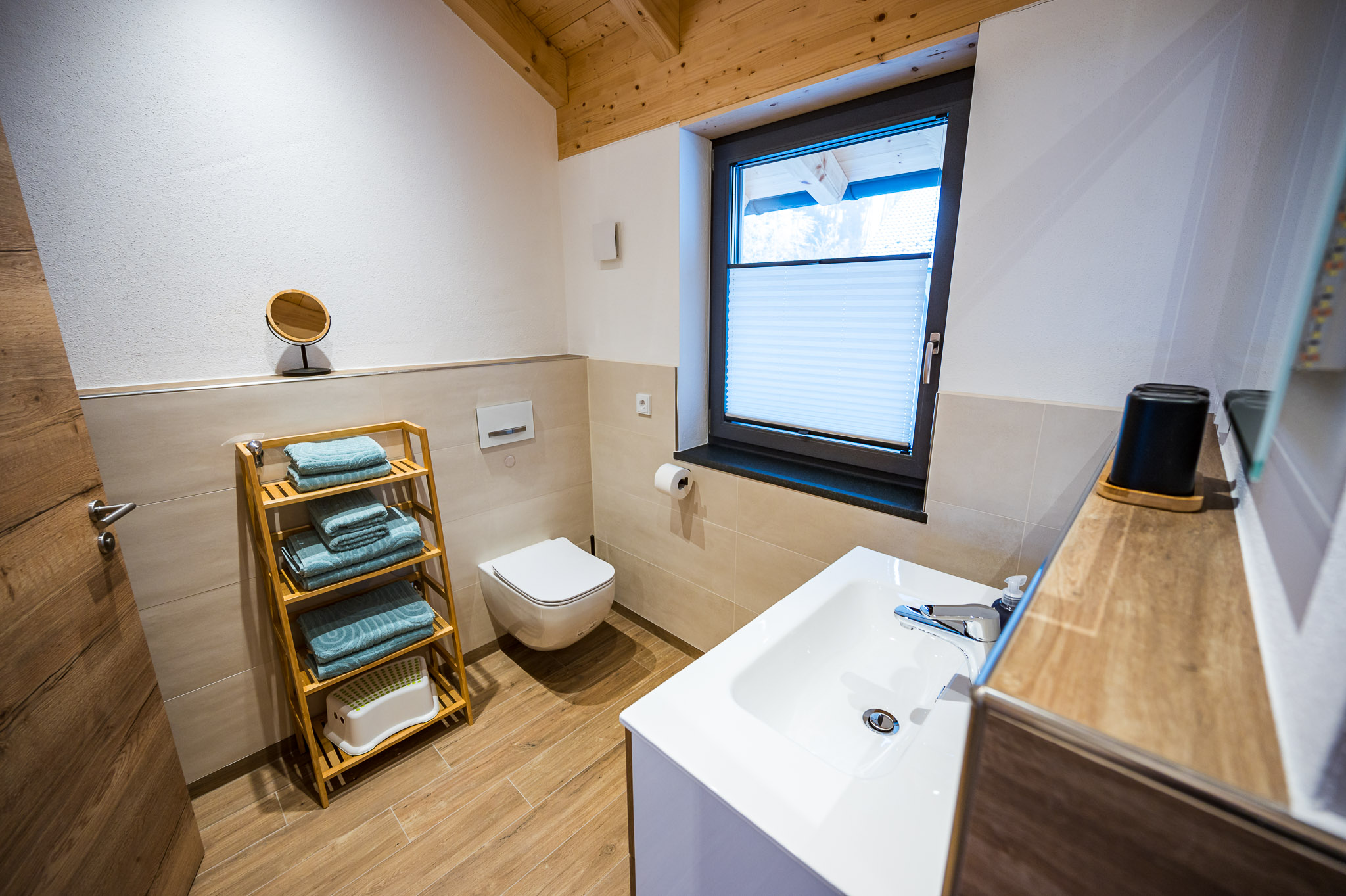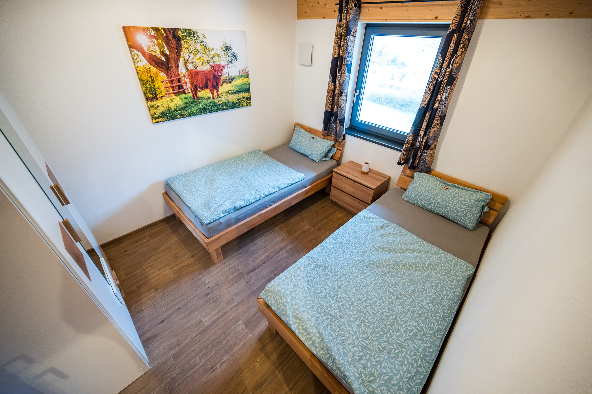 Das Haus wurde 2022 errichtet und wird auch von uns selbst bewohnt. Uns war es sehr wichtig, vorallem mit lokalen Handwerkern zu arbeiten. Die Wohnung liegt im 1. Stock über unserer Garage und ist über einen separaten Eingang mit eigenem Treppenhaus zu erreichen. Auf dem westseitigen Balkon haben Sie den perfekten Blick in den Wald. Hier können Sie schon zum Frühstück so manches Reh beobachten. Zusätzlich stehen Ihnen zwei Parkplätze direkt am Haus zur Verfügung. Außerdem können Sie bequem Ihre Fahrräder bei uns abstellen und auch eventuelle E-Bikes laden .