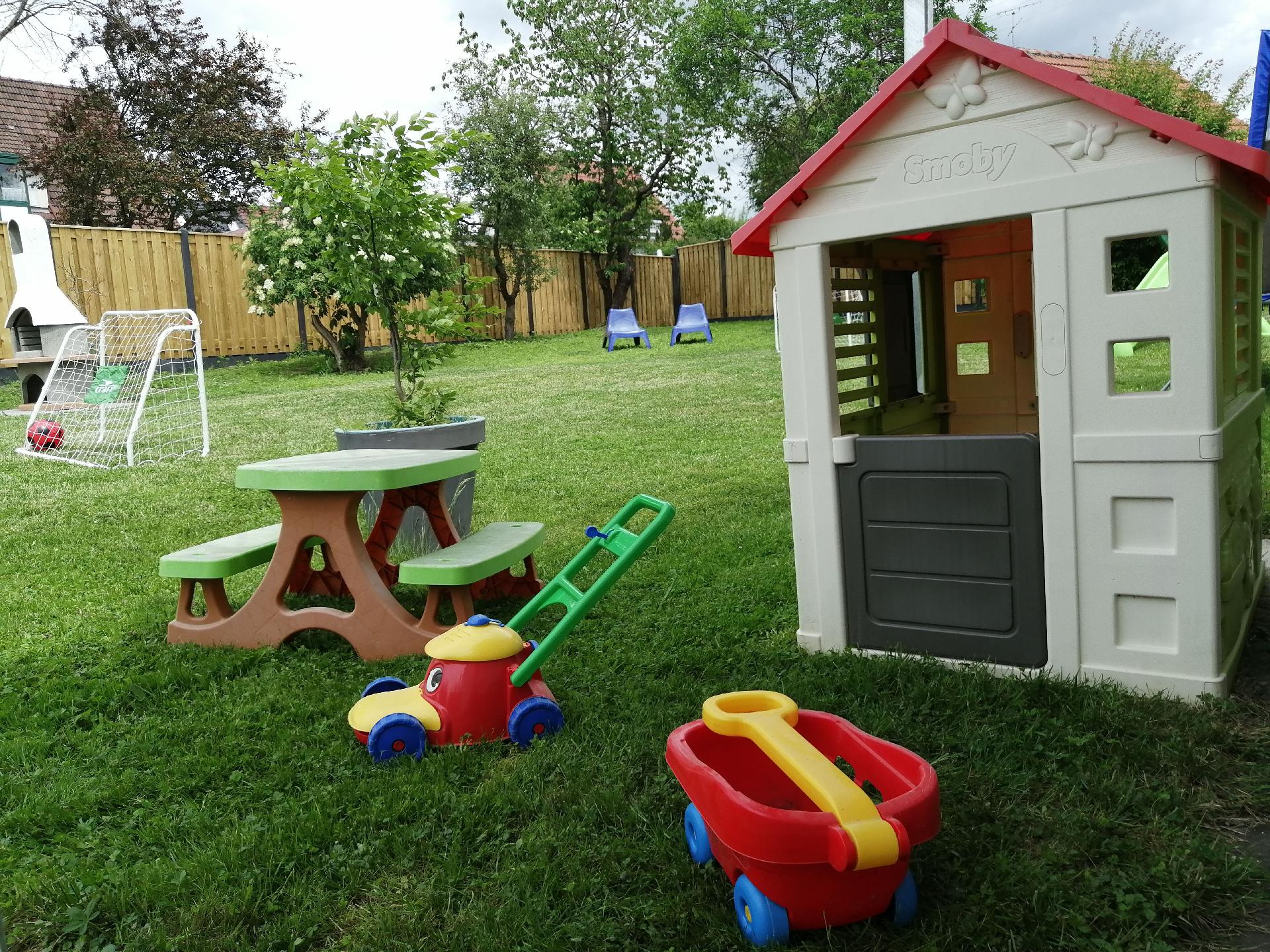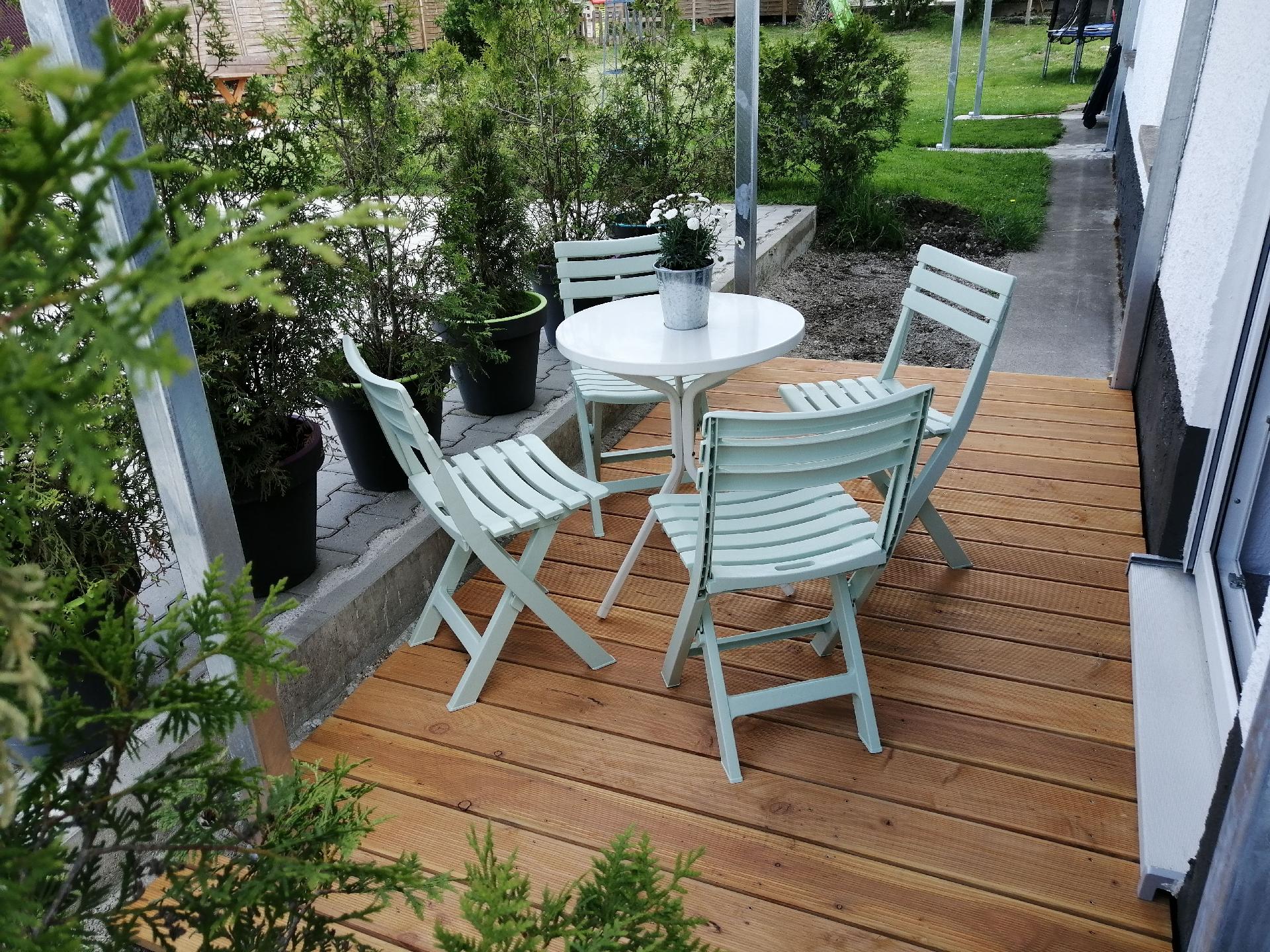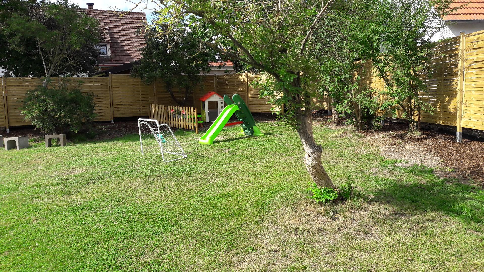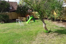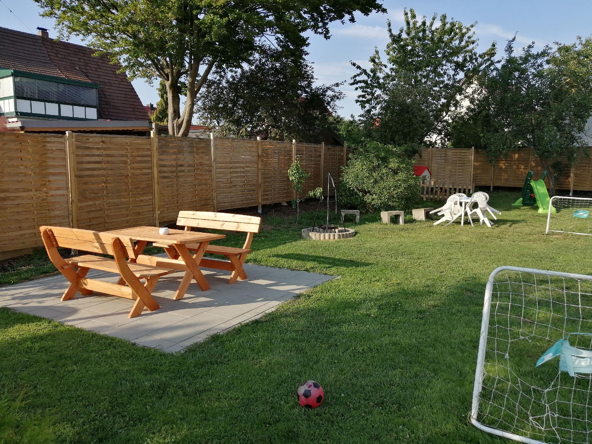 Der große Garten ist ideal für Kinder. Neben einem Spielhaus und Rutsche für die ganz Kleinen haben wir auch ein Trampolin und Fußballtore für unsere kommenden Weltmeister. Für unsere großen Gäste haben wir eine gemütliche Sitzgelegenheit im Garten sowie eine kleine Terrasse zur Wohnung. Hier kann man den Abend gemütlich bei einem Glas Wein ausklingen lassen.