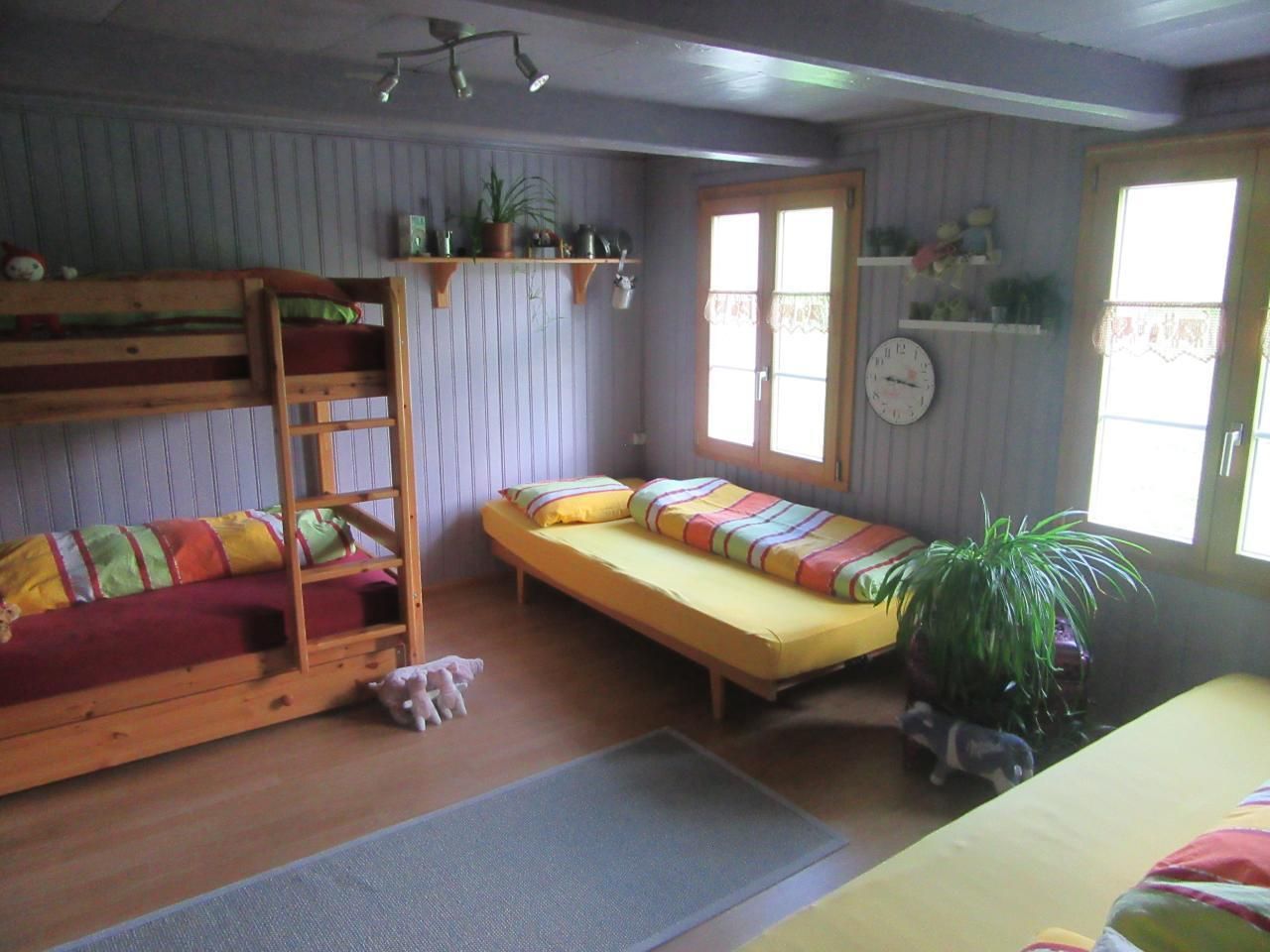 Im Inneren des Hauses erwarten Sie drei einladende Schlafzimmer, die genügend Privatsphäre für jeden bieten. Der weitläufige Wohn- und Essbereich mit einer extra Spielecke für die Kleinsten lädt zum gemeinsamen Verweilen ein. Eine voll ausgestattete Küche mit Backofen, Glaskeramikplatte, geräumigem Kühlschrank und einer Delizio-Kaffeemaschine lässt keine Wünsche offen. Für gemütliche Abende steht ein kleineres Wohnzimmer mit Fernseher und einem Chemineefeuer bereit, das zusammen mit einem weiteren Holzofen und elektrischen Ölradiatoren für wohlige Wärme im ganzen Haus sorgt.