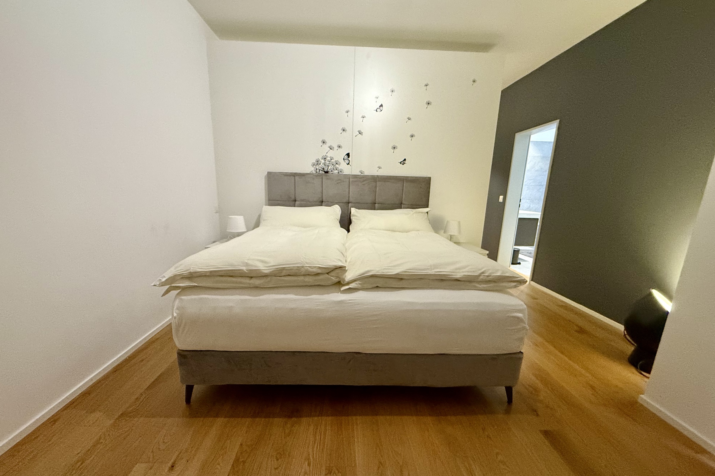 Die Ferienwohnung verfügt über ein Schlafzimmer mit grossem Doppelbett
