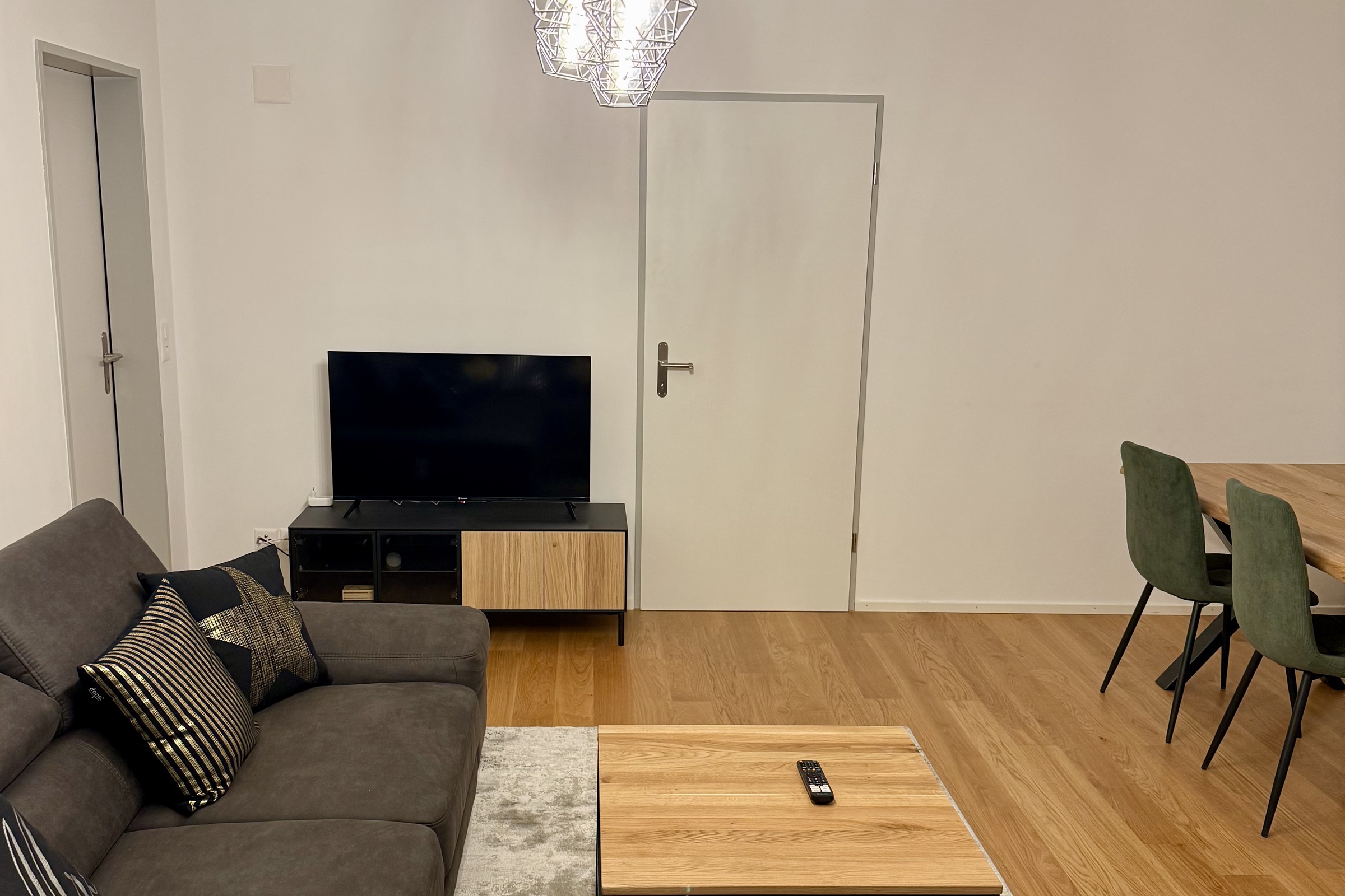 Im Wohnzimmer befindet sich ein Smart-TV mit DVD-Player. WLAN ist kostenlos in der Wohnung vorhanden.