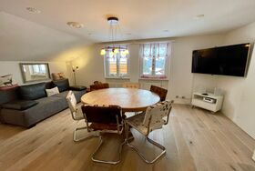 Im Wohnzimmer befindet sich ein Flachbild-TV. WLAN ist in der Wohnung vorhanden.